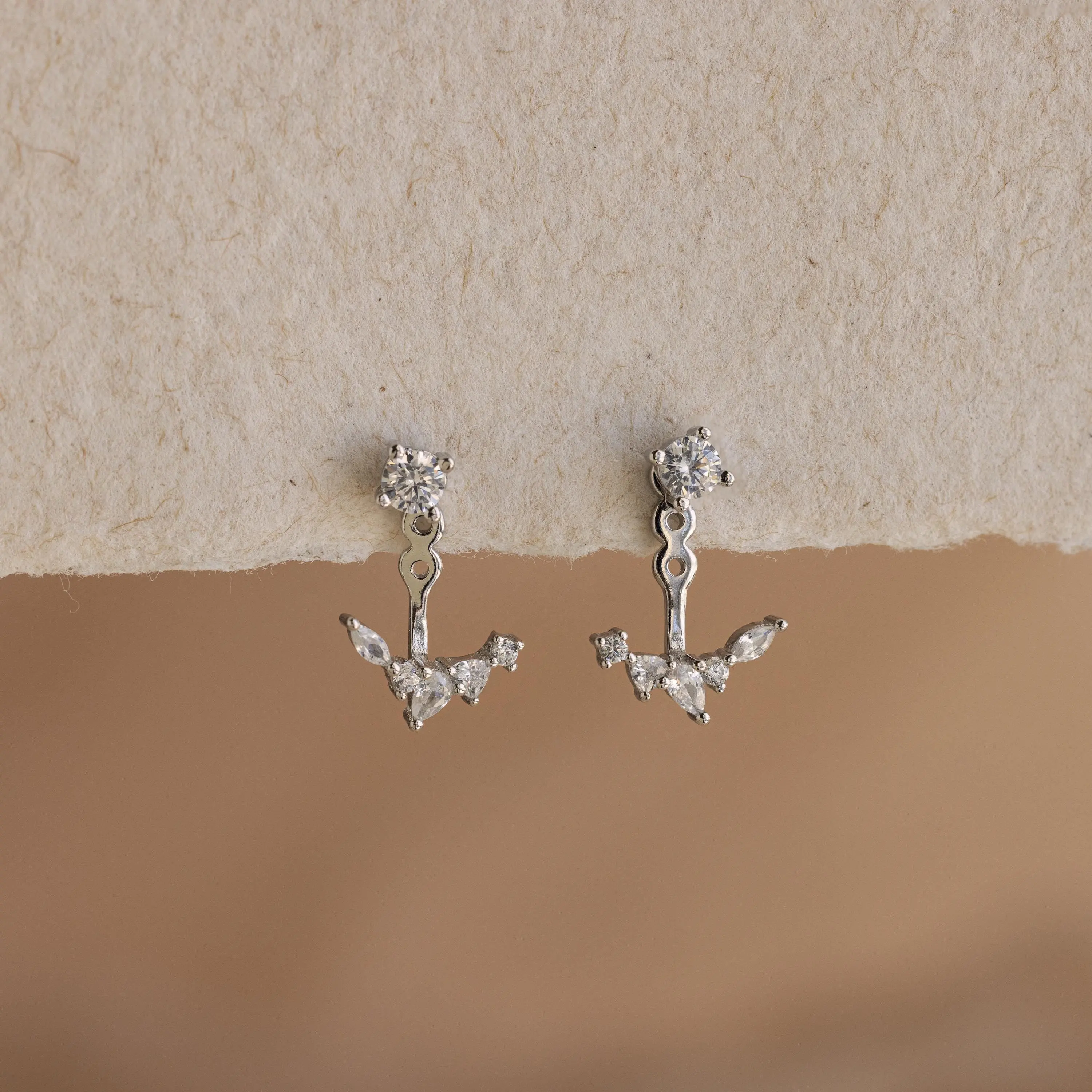 ·Featuring ~5.5mm Ear Jacket Stud Earrings with CZ Diamonds, adjustable from ~10.5mm to ~16mm