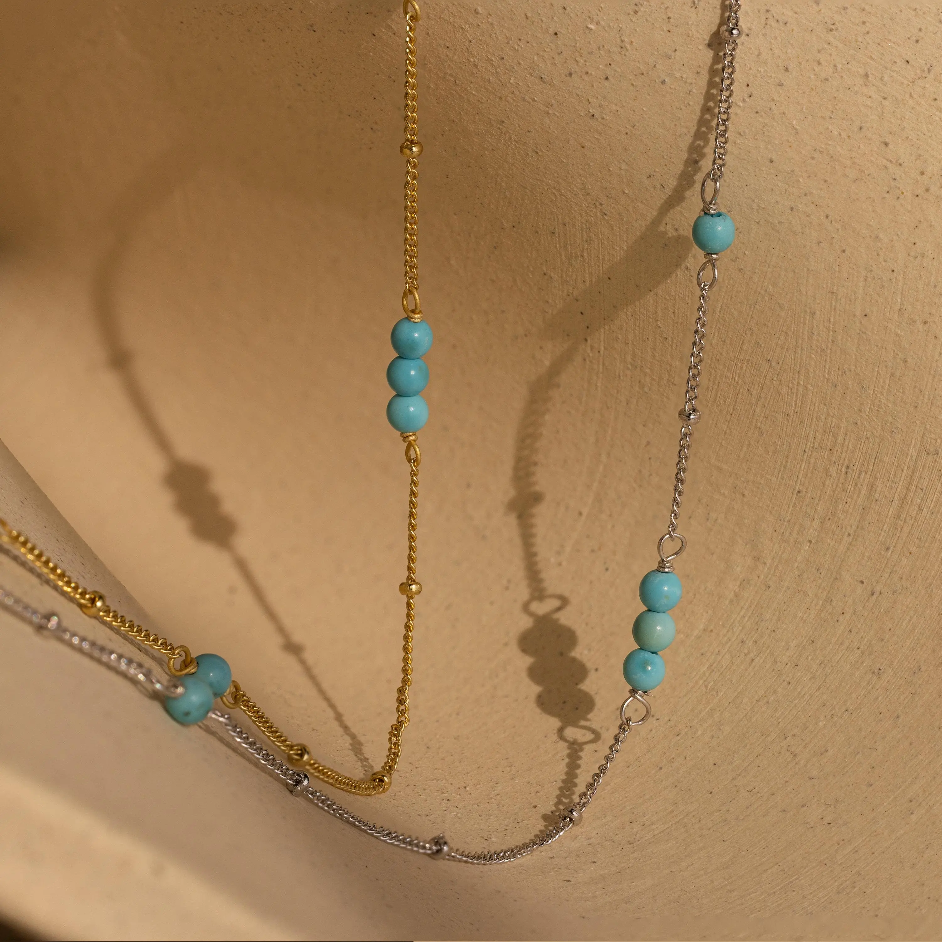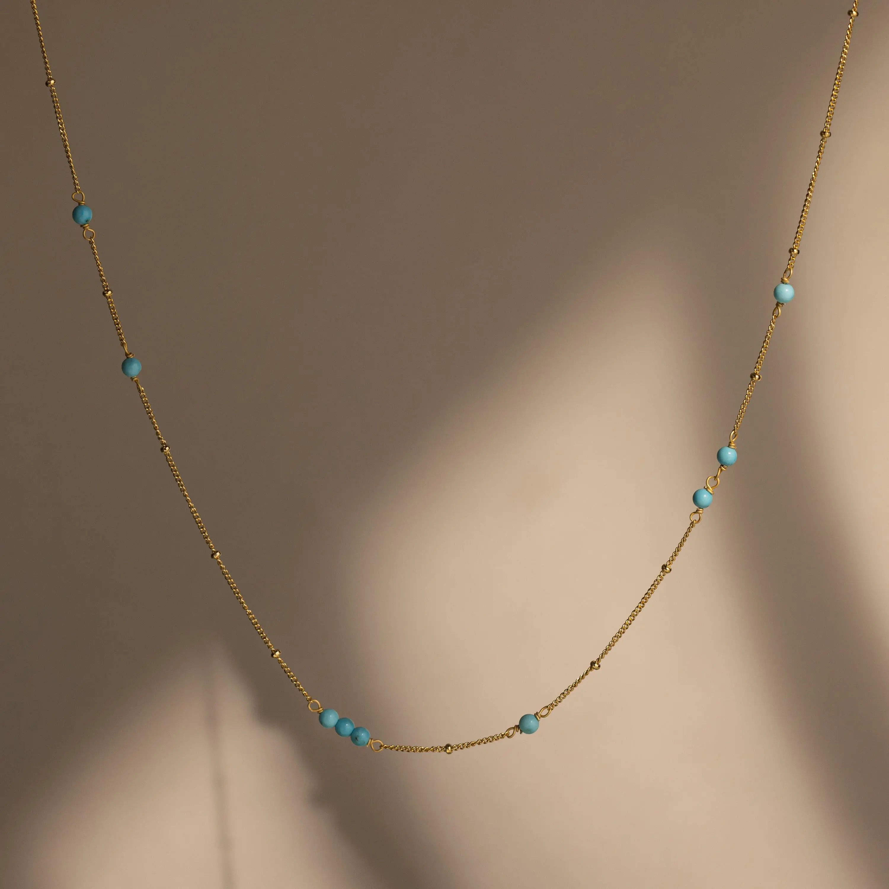 Make every outfit stand out with our Turquoise Satellite Necklace! Featuring vibrant turquoise beads spaced along a delicate satellite chain, this necklace adds a fun, colorful touch to any outfit. Perfect for layering or wearing solo, it’s a piece you’ll reach for again and again