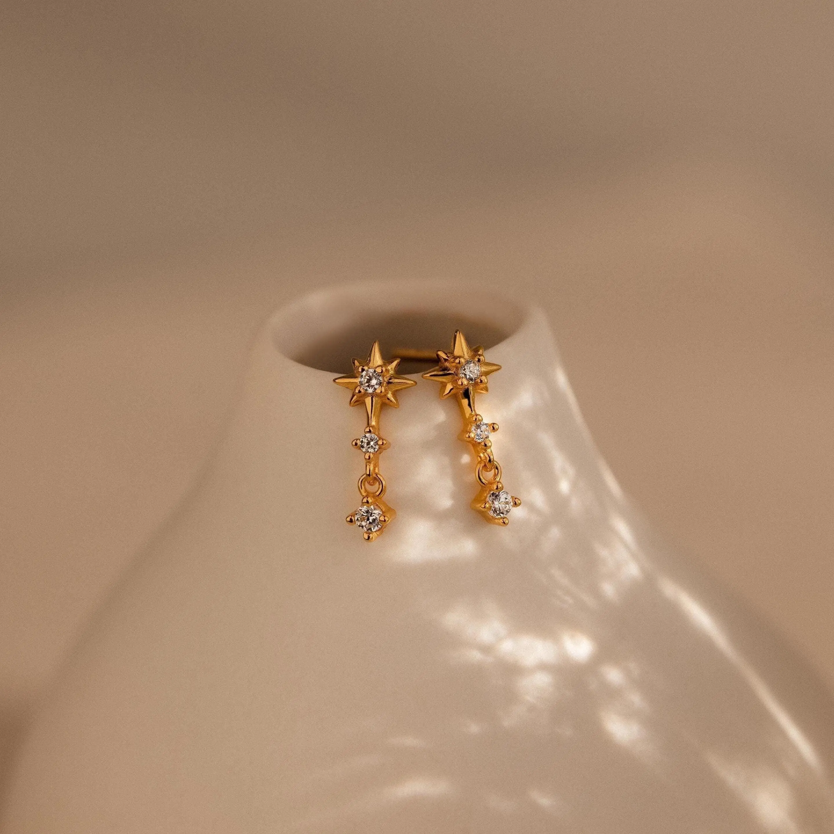 ·Dimensions: 12.5mm Star Drop Studs | 1.5-2mm CZ Diamonds | 20 Gauge