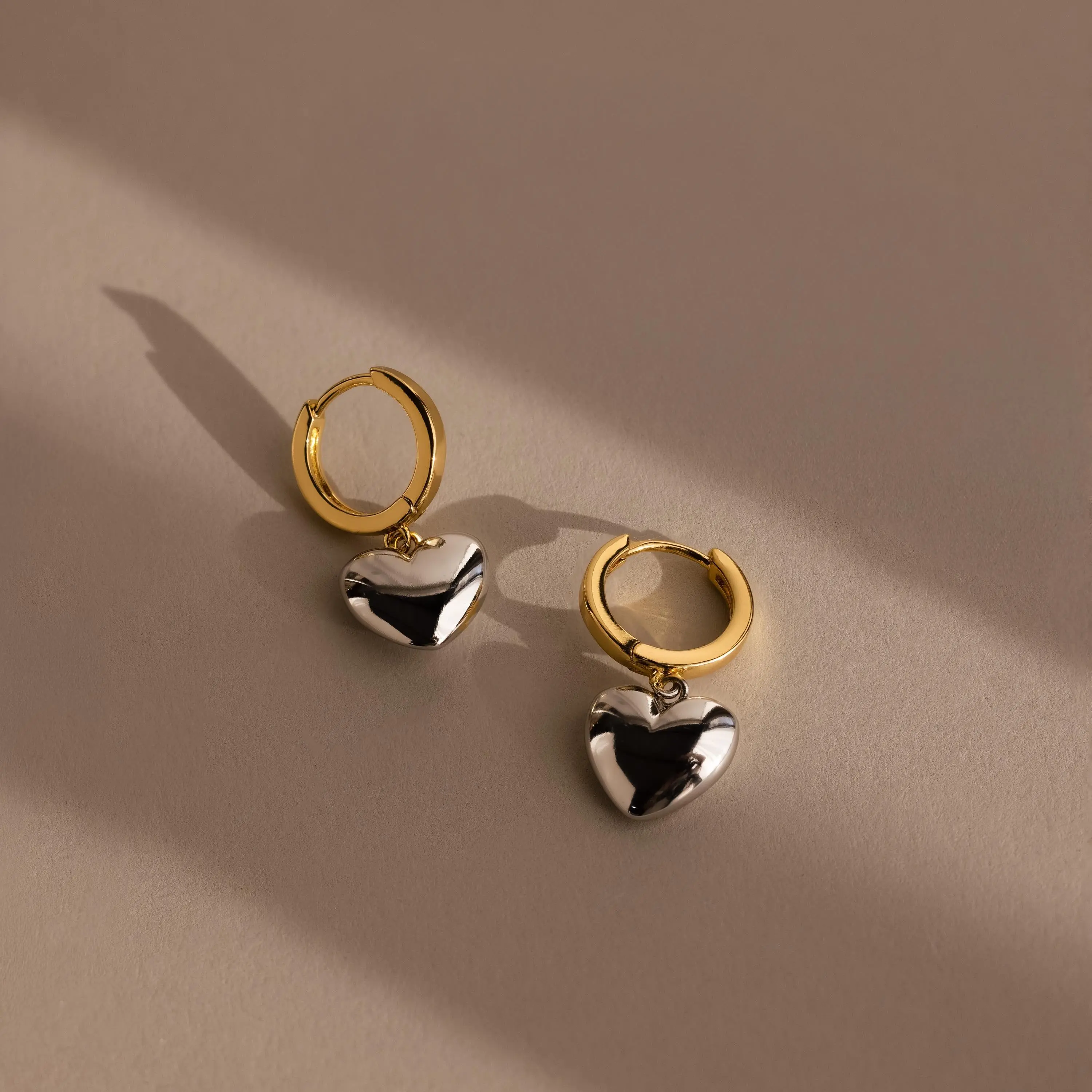Make a bold yet romantic statement with our Mixed Metal Heart Huggies! Featuring dainty gold hoop earrings adorned with silver puff heart charms, these earrings effortlessly combine sweetness with sophistication. 🤍