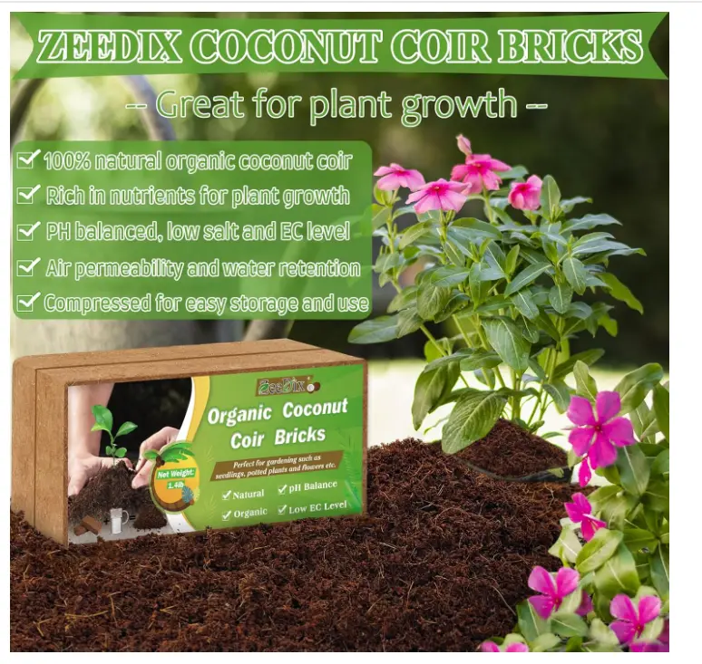 【Coco Coir Brick】: Made of 100% natural organic coconut coir, which extracted from the husk on the outer shell of a coconut, low EC and suitable pH can provide a healthy growing environment for most flowers and plants, so it can cultivate flowers and economical plant products without soil, and can also cultivate seedlings