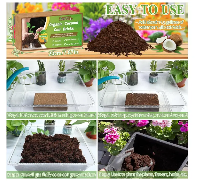 【Easy to Use】: Just soak the coco coir bricks in water, it will expand after aborb up water, you can speed up its decomposition and expansion through the mixing of tools, then you can use them to plant the seeds and seedlings