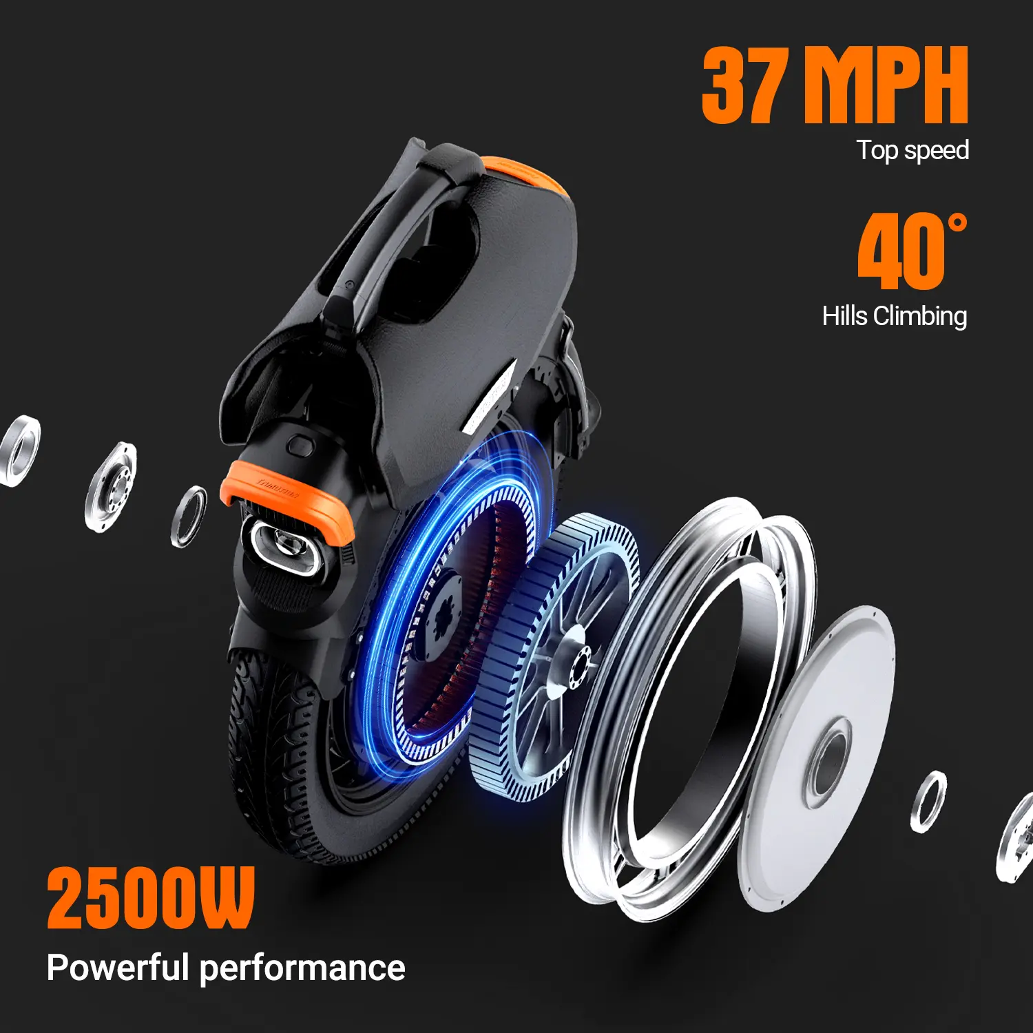 ·Industry-Leading Power: 2500W Sustained / 7000W Peak Brushless Hub Motor - Conquers 40° Inclines Like a Mountain Goat, Max 34mph (55km/h) Speed. Perfect for fun rides, daily commutes, and off-road adventures, it delivers a secure and thrilling experience on every journey.
