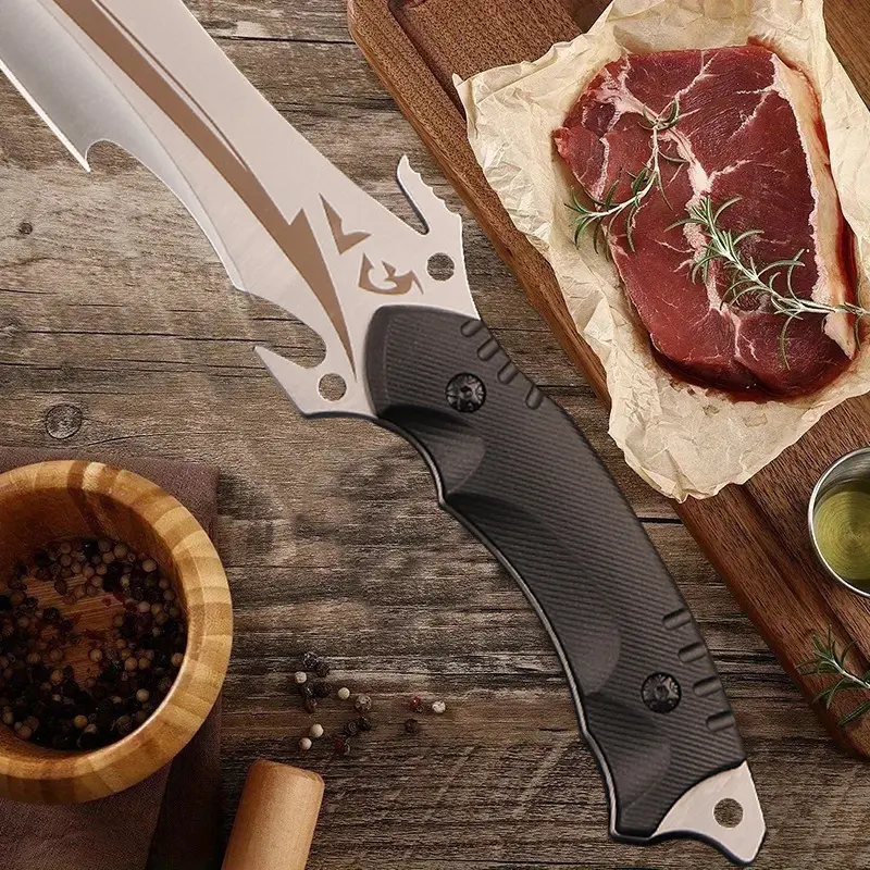 Meat poultry cutting deboning knife, steak knife, kitchen chef knife, barbecue knife, with handmade leather sheath, high hardness stainless steel fixed blade ergonomic anti-slip handle, suitable for home kitchen, camping barbecue cooking, men's gift
