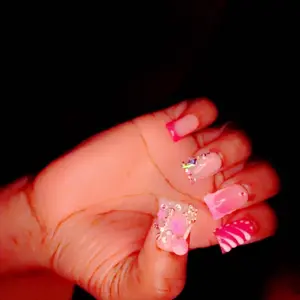 The nails were really, really cute. I think the size of it got was a little too big for my fingers and a couple of my nails that I tried to put on they were folded somehow and I could not put it on my finger the correctly and it hurt my finger so bad that I had to take the fingernails off and then when I got my package, my nails were spread around everywhere in my thing so I had to neatly put them all together. But overall, the nails were cute