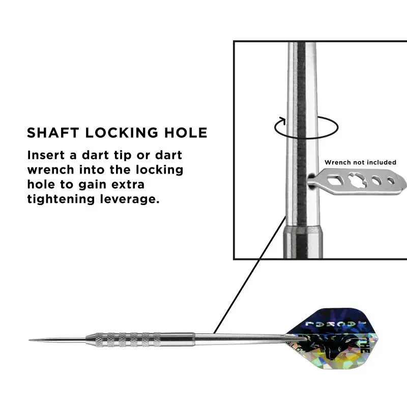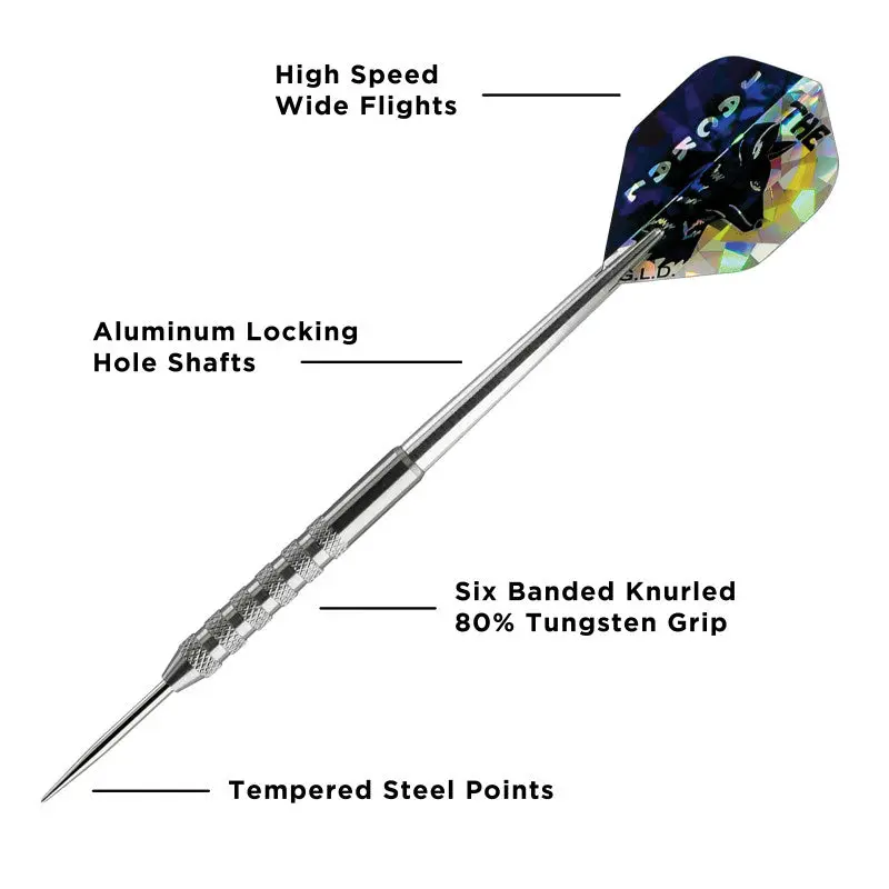 ·Includes wide glide flights, three silver aluminum shafts, and a flexible holster dart case.