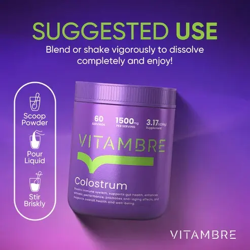 Elevate your wellness with VitamBRE COLOSTRUM and experience the benefits of a well-rounded, nutrient-dense supplement.