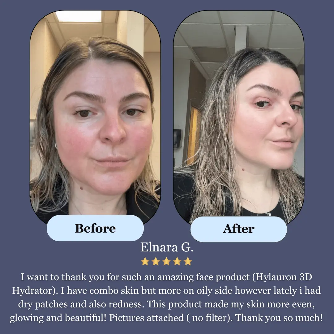 I always assumed my skin was just naturally dry. After using Hyaluron 3D Hydrator for a few weeks, I realized the real issue was that my skin couldn’t hold onto water. This product changed that completely. My skin feels comfortable even hours after cleansing, and I no longer feel that constant need to reapply products. The hydration feels internal and stable, not cosmetic. My complexion looks smoother, calmer, and more even overall. This is the first product that made hydration make sense to me.