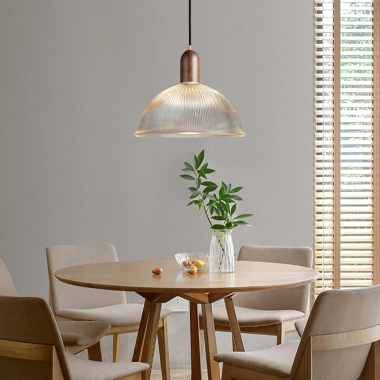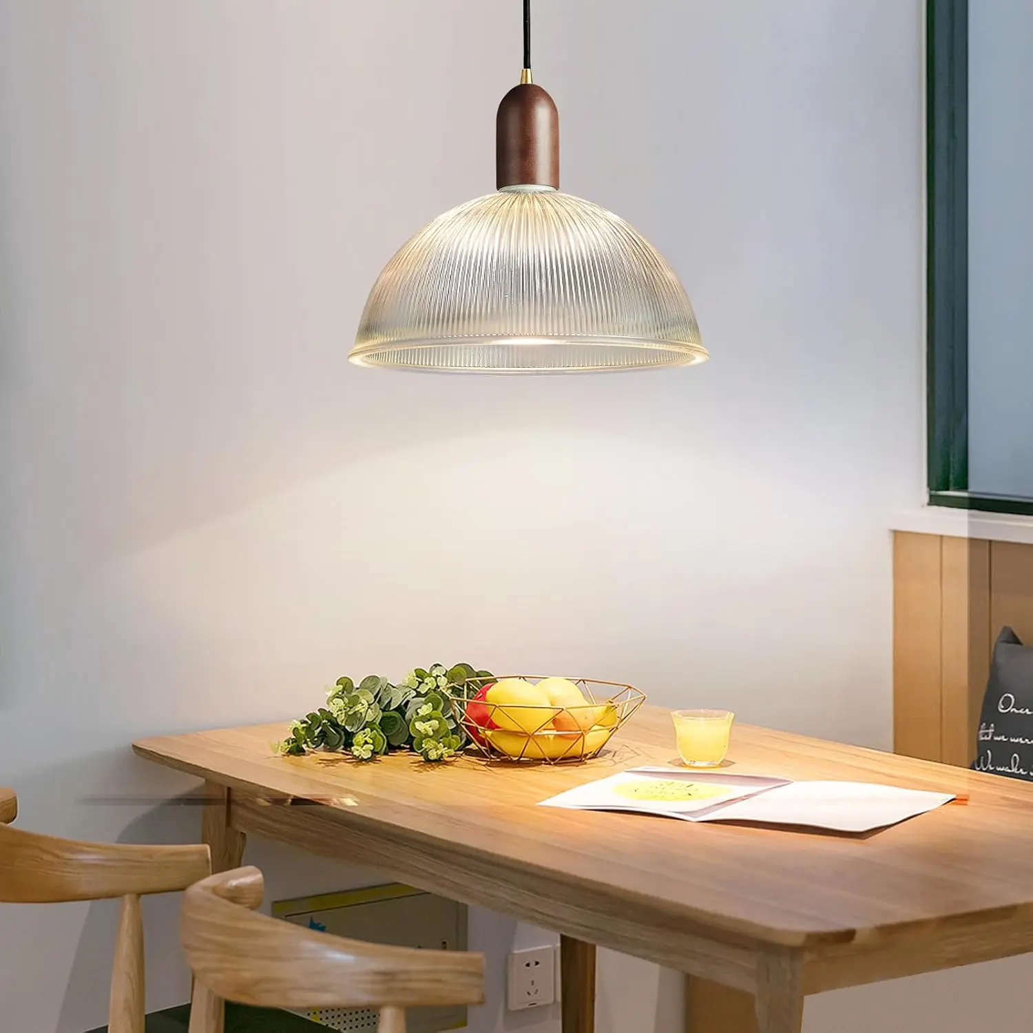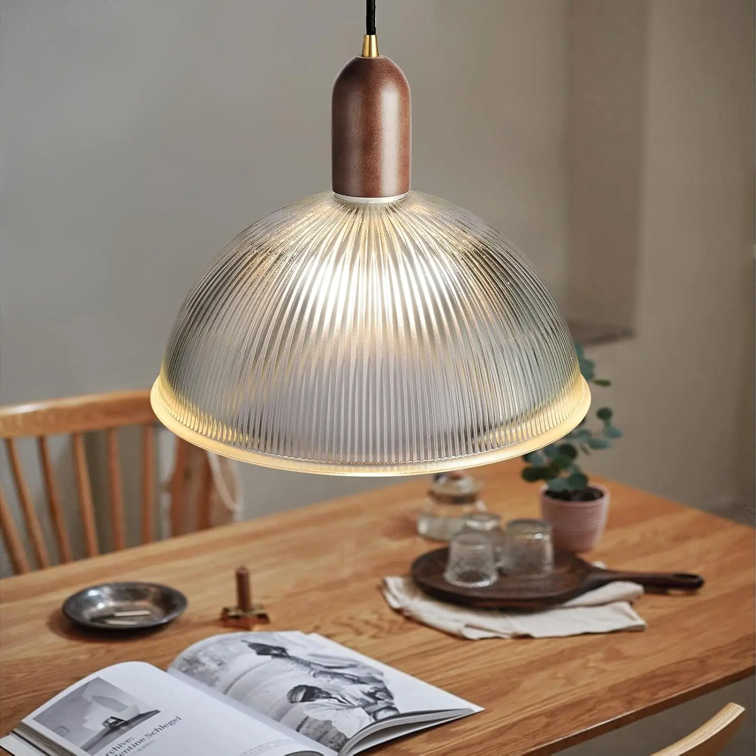 Featuring a stunning wavy surface glass shade, this single pendant light adds a sophisticated touch to any space. The combination of clear glass, solid wood, and brass metal accents makes it a standout piece, perfect for modern and farmhouse interiors. 🌾🏠