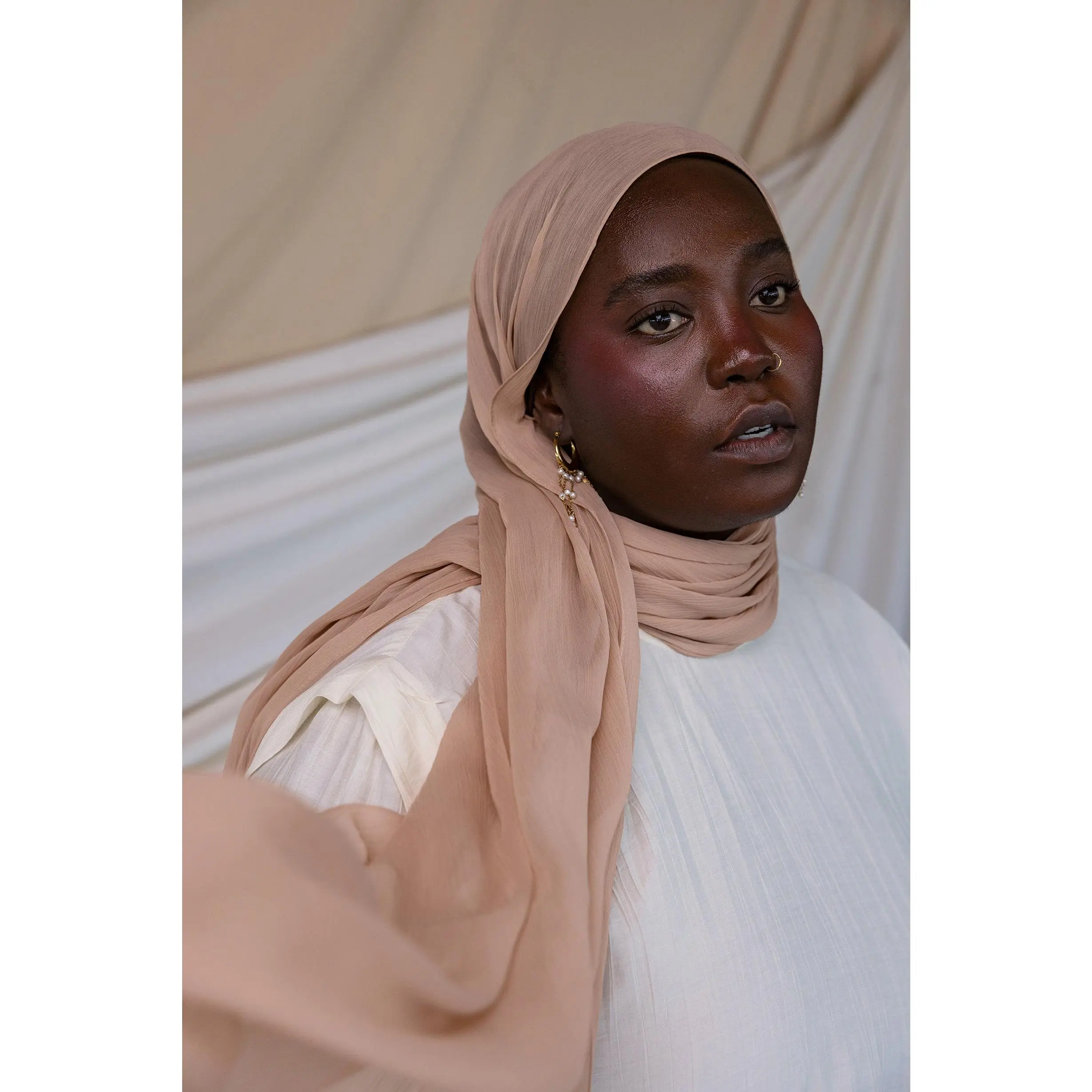 Wrap yourself in the warmth of Honey Amber. This vibrant, golden crinkle chiffon brings a touch of sunshine to your day. No slip and incredibly soft, this hijab is designed for those who love to add a hint of luxury to their everyday style. Say goodbye to ironing and hello to effortless beauty with this versatile piece. The Honey Amber Crinkle Chiffon Hijab is the perfect scarf hijab for a polished, stylish look.