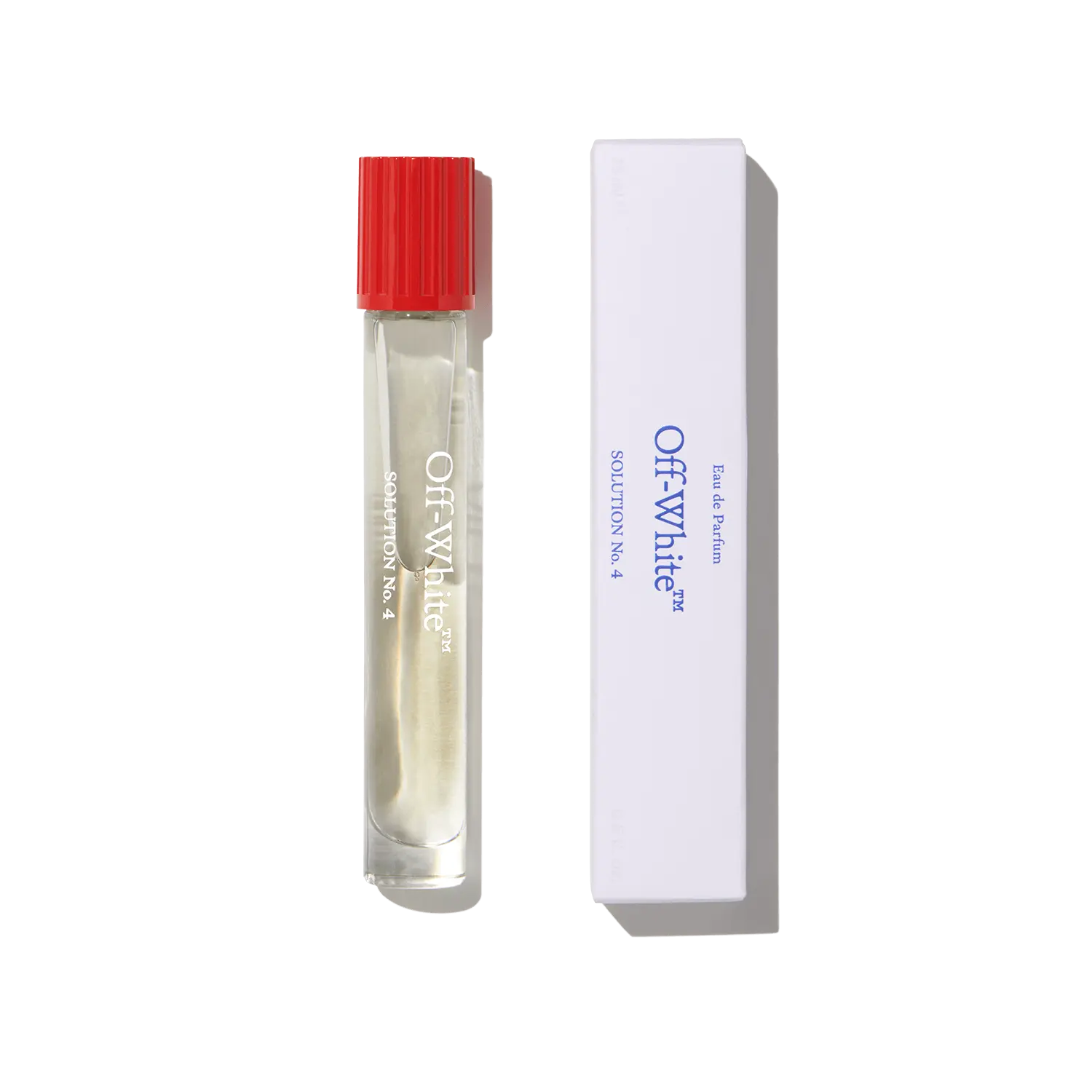 Off-White™ SOLUTION No. 4 Eau de Parfum, is a fresh urban aroma contrasted by a warm woody and leathery base to recreate a world of comfort and fullness. A fragrance with a chic streetwear spirit where nature, symbolized by eucalyptus, lavender and woods, takes possession of the city represented by black leather. This unisex fragrance also invites itself into your home for even more wellbeing and harmony. Pair with SOLUTION No. 1 or SOLUTION No. 6 or with any of your favorite SOLUTION for more versatility in your signature scent.