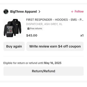 When I place my order I ordered an extra large dispatchers hoodie and gray.$45 later and I have a gray t-shirt, now my daughter loves the T-shirt so I can't send it back but I ordered a gray hoodie for $45 I'm just not sure what to do.