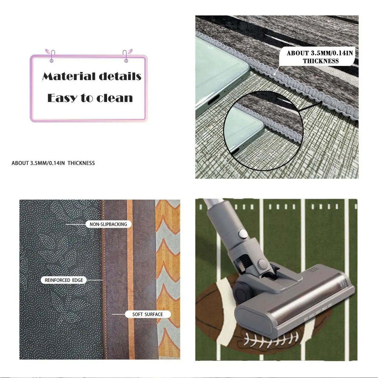 Decent rug for the most part. I wish the white on the yard lines were whiter but it does the job