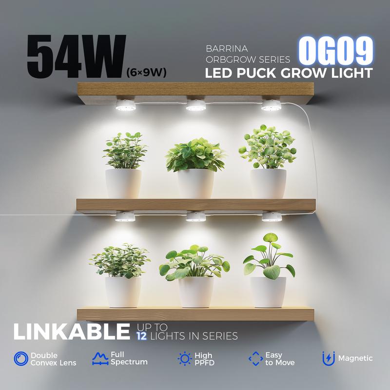·Linkable Design: The Orbgrow OG09 grow light connects up to 12 Barrina LED grow lights with included 7.87 inches and 47.24 inches cables, letting you customize your lighting for different indoor gardening setups, from small plant shelves to large growing areas