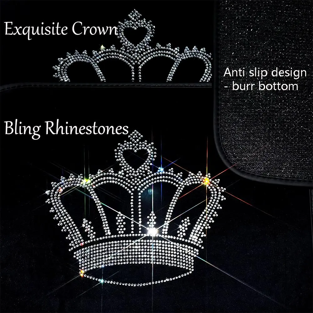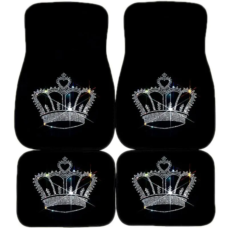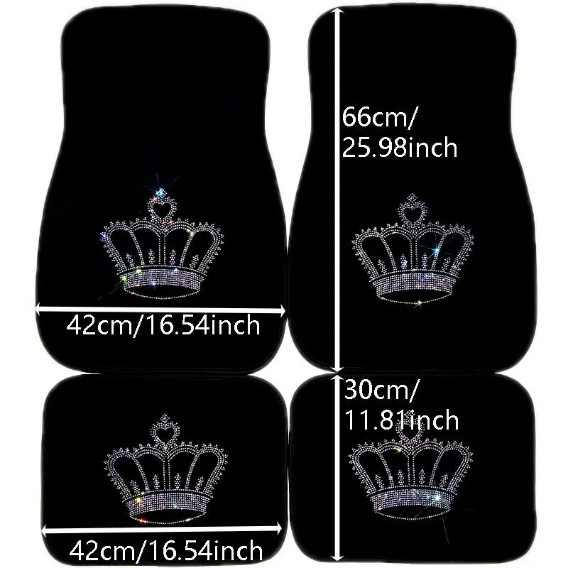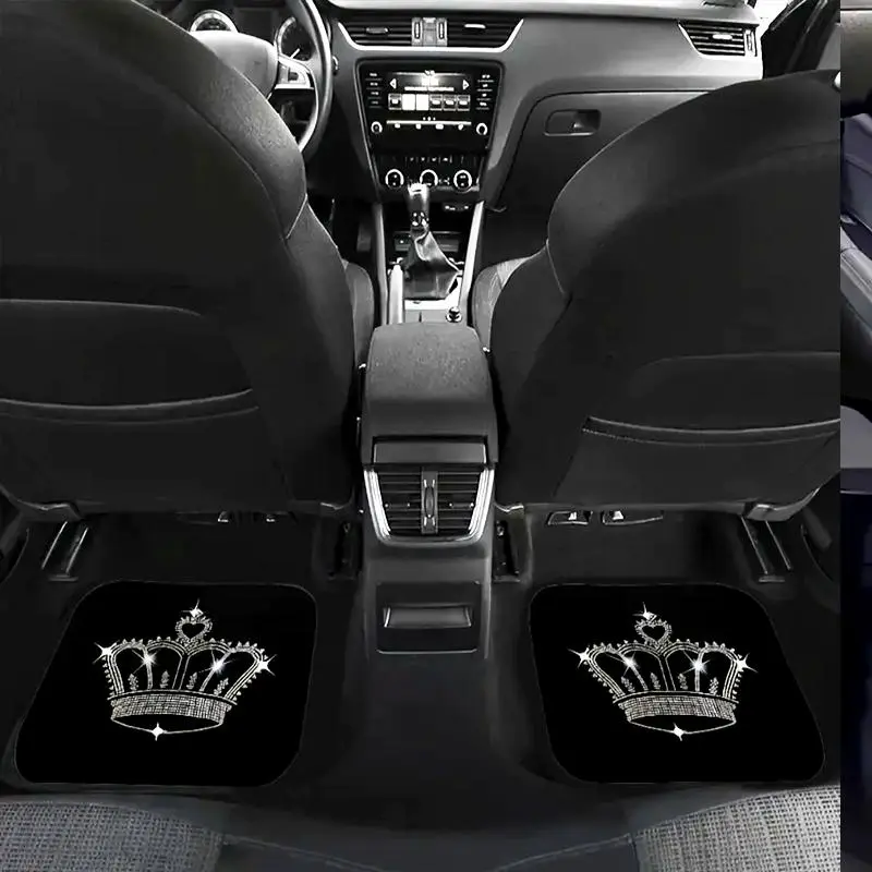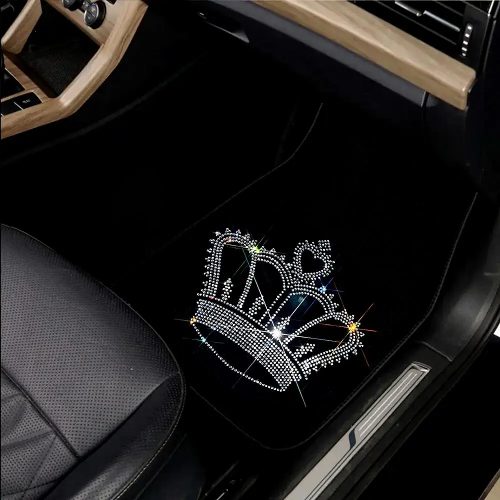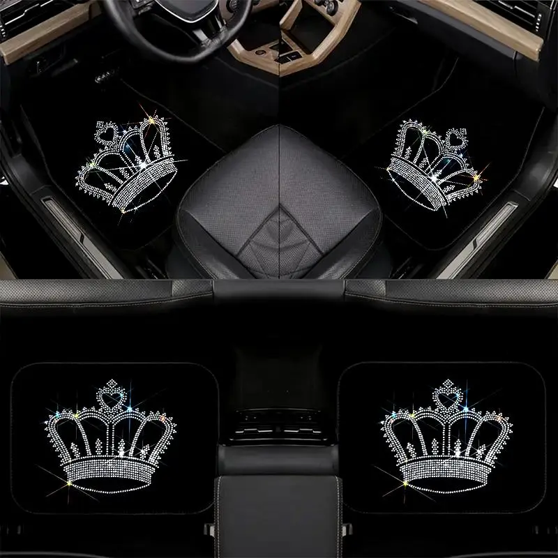 Crown Pattern Car Floor Mat, 4 Counts/set Rhinestone Decor Car Interior Decorative Floor Mat, Universal Car Interior Accessories for Women, Men Gifts, Car Mats