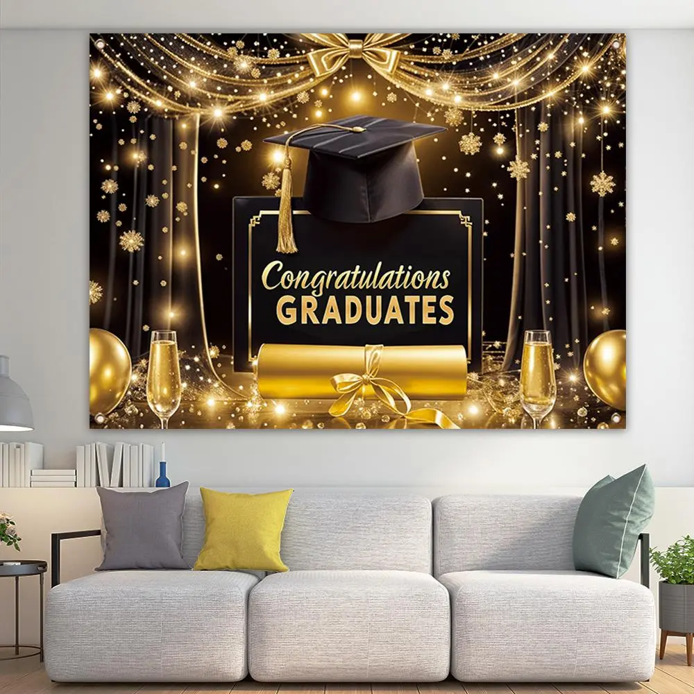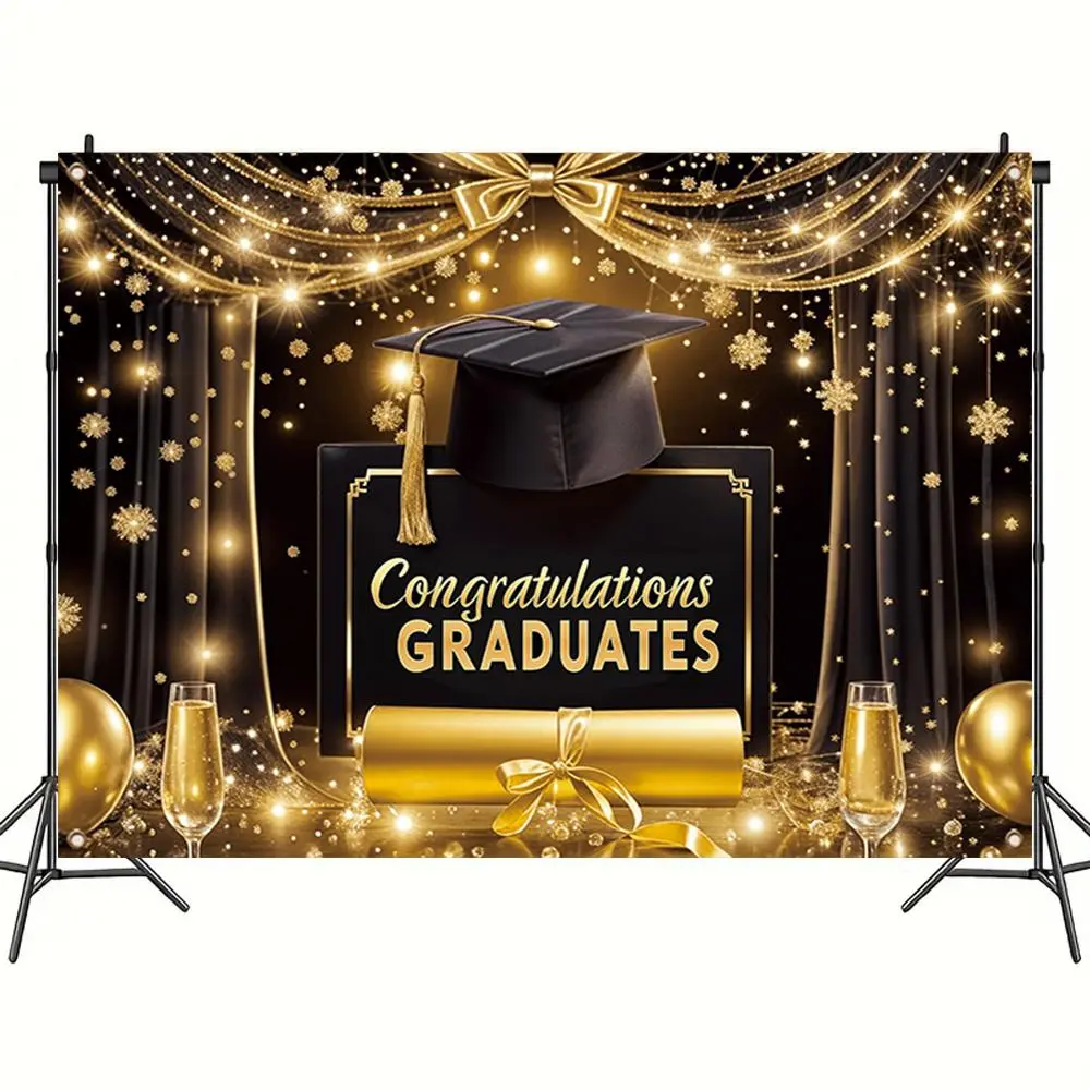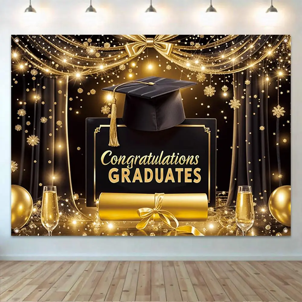 Graduation Season Theme Background Banner, 1 Count Champagne Balloon Pattern Backdrop, Decorative Banner for Photography Room Living Room Party Decoration