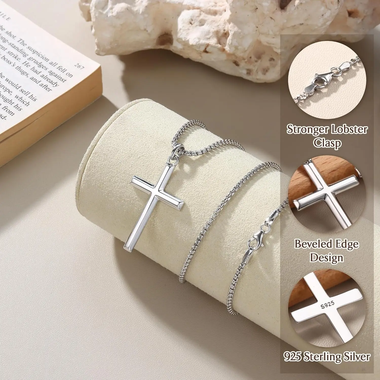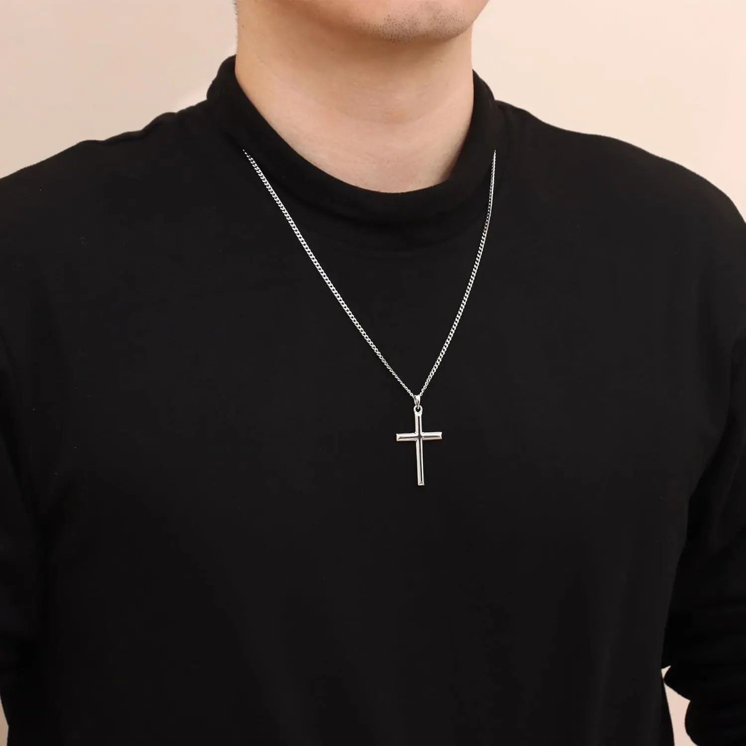 ·Solid 925 Sterling Siver : This cross necklace for men meticulously crafted from 925 sterling silver, ensuring a timeless elegance and durability. more scratch resistant and less prone to tarnishing. Women mens sterling silver cross necklace is hypoallergenic, lead-free and nickel-free, as a great choice for sensitive skin