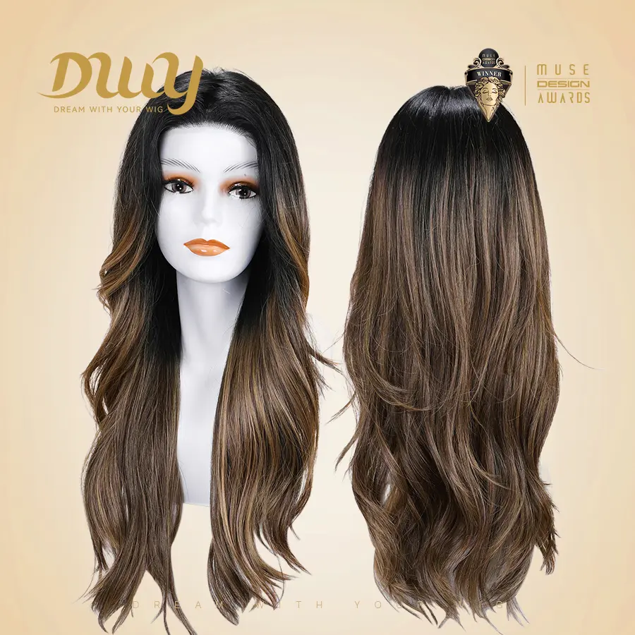 My first monofilament wig and it is pretty. It has a very shiny dark root, caramel balayage w/sparse pink fibers in it. Nice curl pattern however it tangles soo easily. The fibers are almost like damaged hair and I keep having to cut the wig to continue using it. Hairline is great. Hair quality not.