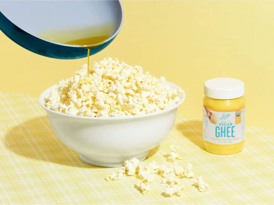 ·SPREAD, SAUTÉ, BAKE, POP - Crafted for a higher smoke point (450 F) so you can saute and bake the same way you would with traditional butter or cooking oils without worrying about temperature. Customers enjoy using vegan ghee to sauté veggies, bake favorite treats (like Livlo brownies, biscuits or scones!), spread onto toast, pancakes & waffles, or simply melted over popcorn.