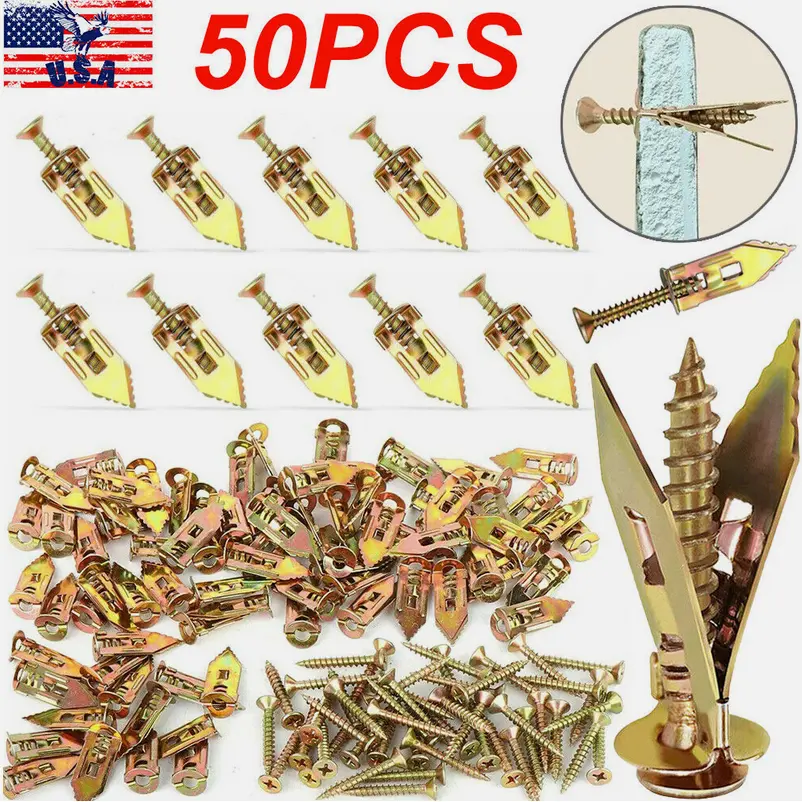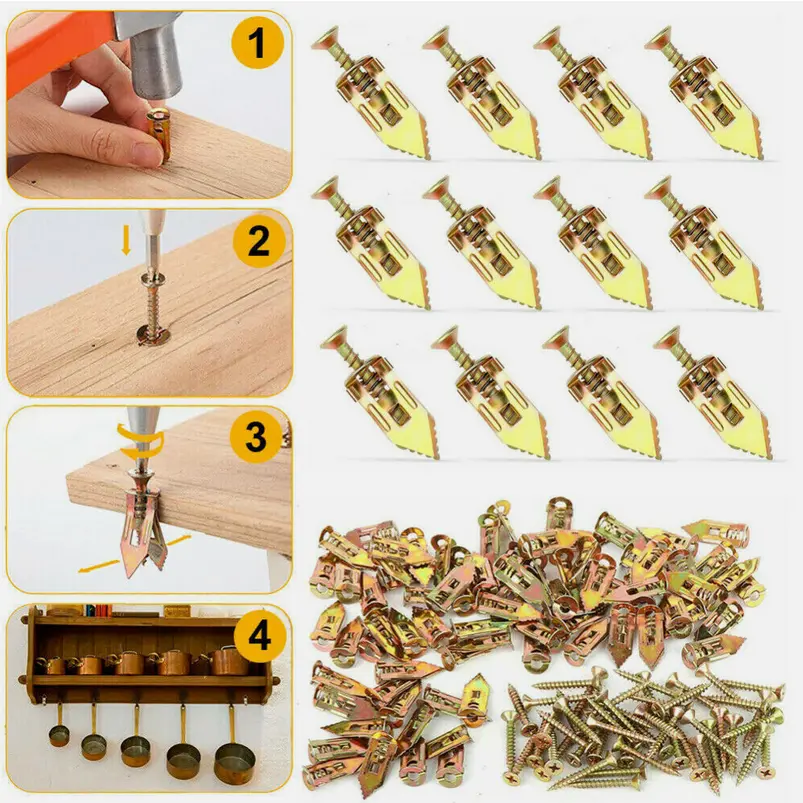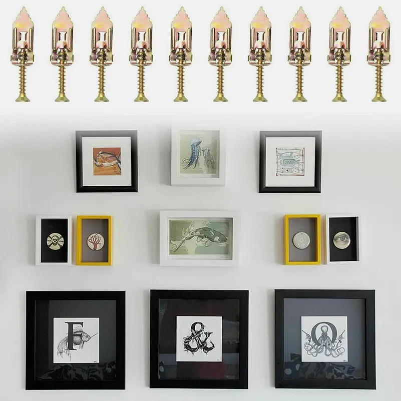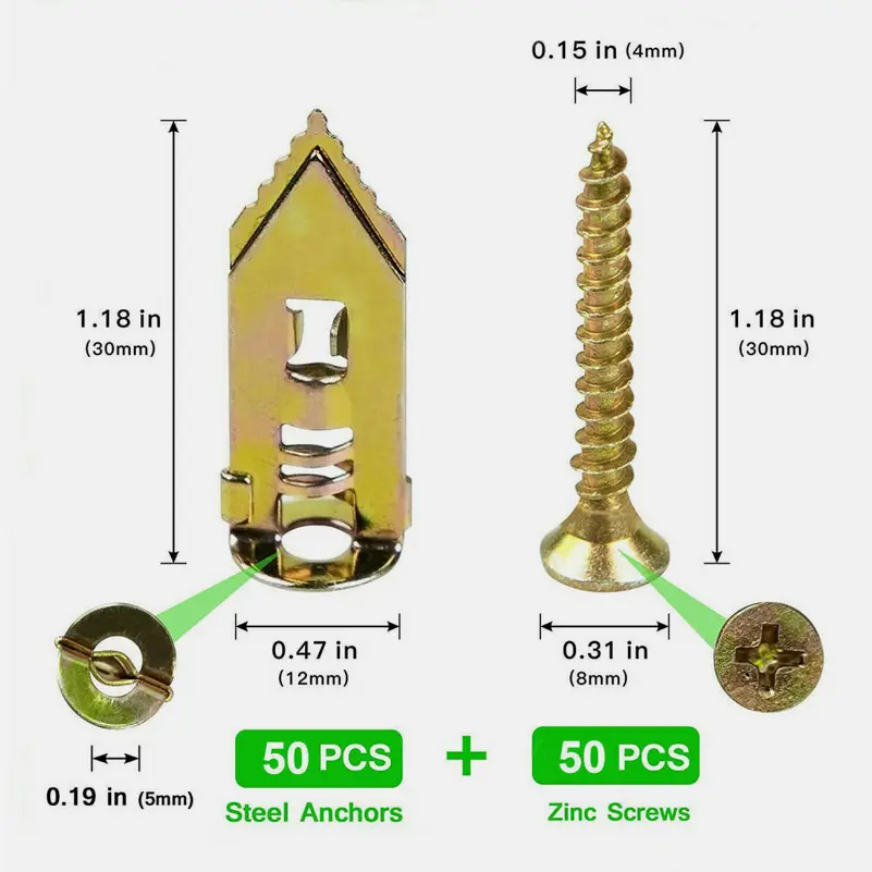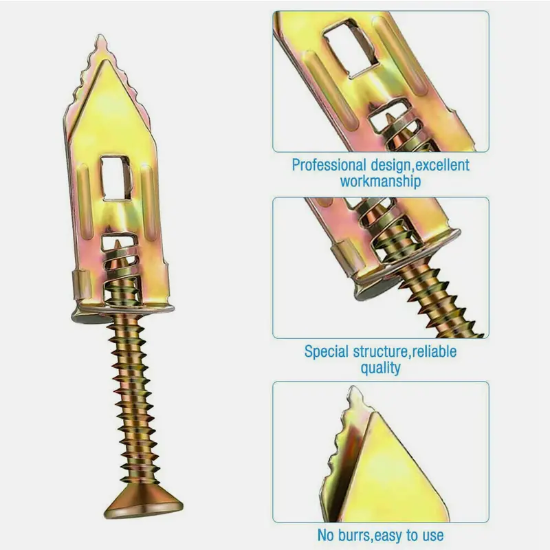 ·Durable Material - These drywall anchors are made of carbon steel, which has high hardness and can withstand great pressure. With yellow zinc plated on the surface enhances their corrosion resistance and extends their use and storage life.