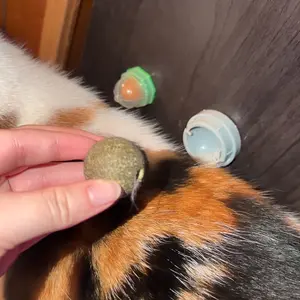 ·Practical Design: the cat toy can easily stick to the wall or other surfaces with strong viscous force, no falling off when your kitten licks and plays. The 4 balls are 360° rotatable when being licked