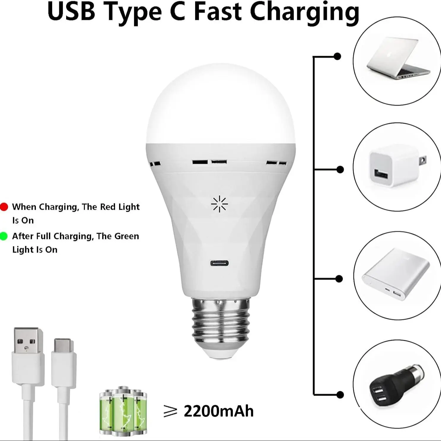 Rechargeable LED Bulb, 1 Count Smart LED Bulb with E27 Base, Dimmable LED Bulb with Timing Function, Remote Control LED Light Bulb for Home, Office, Bedroom