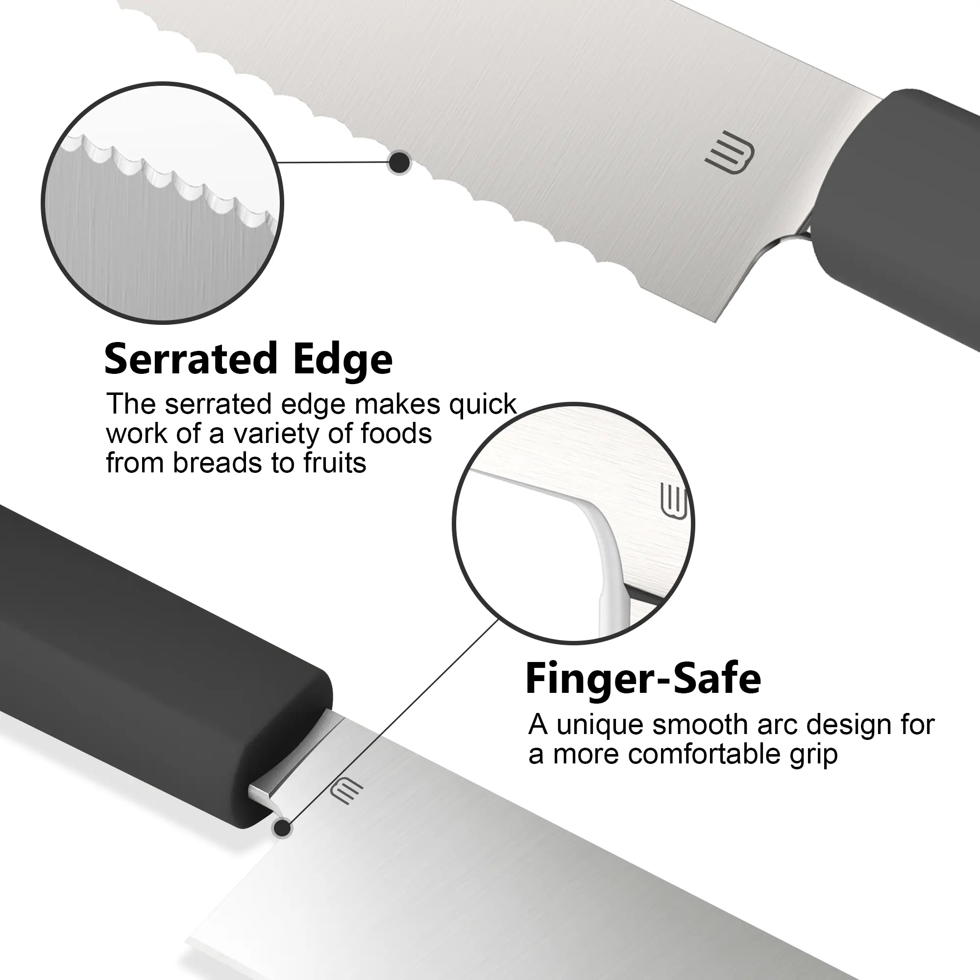 5. Butterfork Purest 8” Bread Knife, AR-RPM9 Stainless Steel, Replaceable ABS Handle, Dark Grey