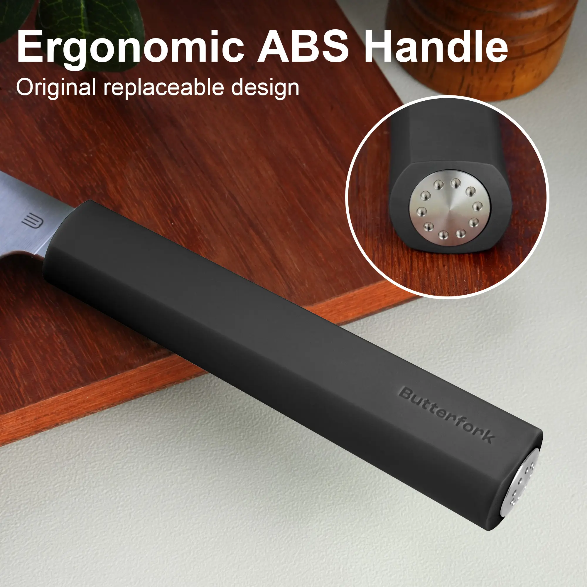 At the same time, Considering the modern kitchen's aesthetic and individual preferences for color, we have introduced a design with interchangeable knife handles. Currently, we offer six ABS handle options. We will continue to expand our selection with different materials and colors to complement the styles of our users' home kitchens.