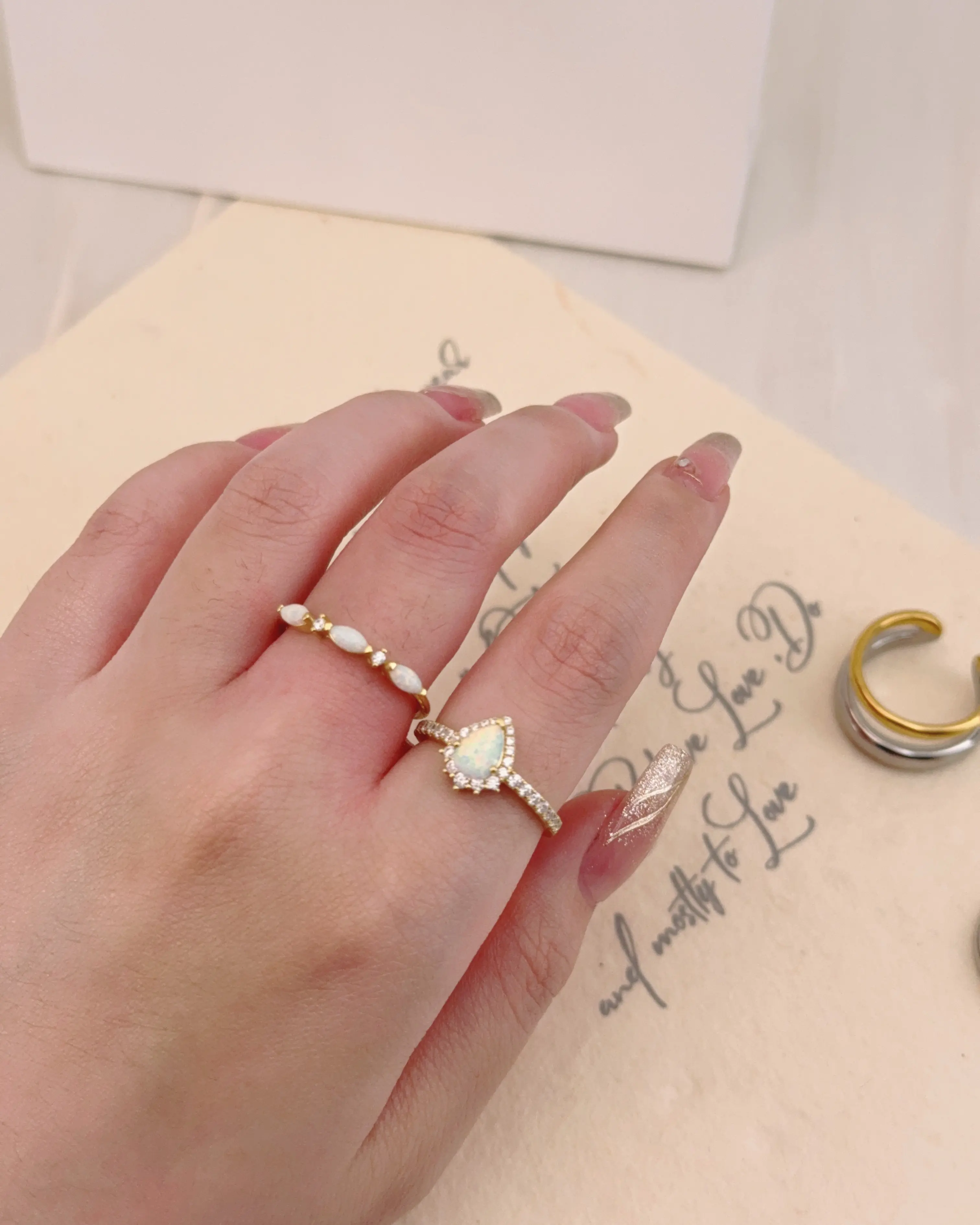 This opal ring sparkles with sophistication from every angle, wear it as a statement ring or stack with our shinning marquise ring together for a unique style.