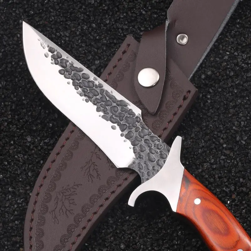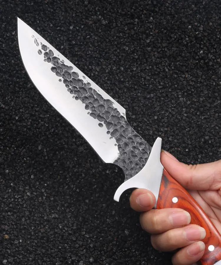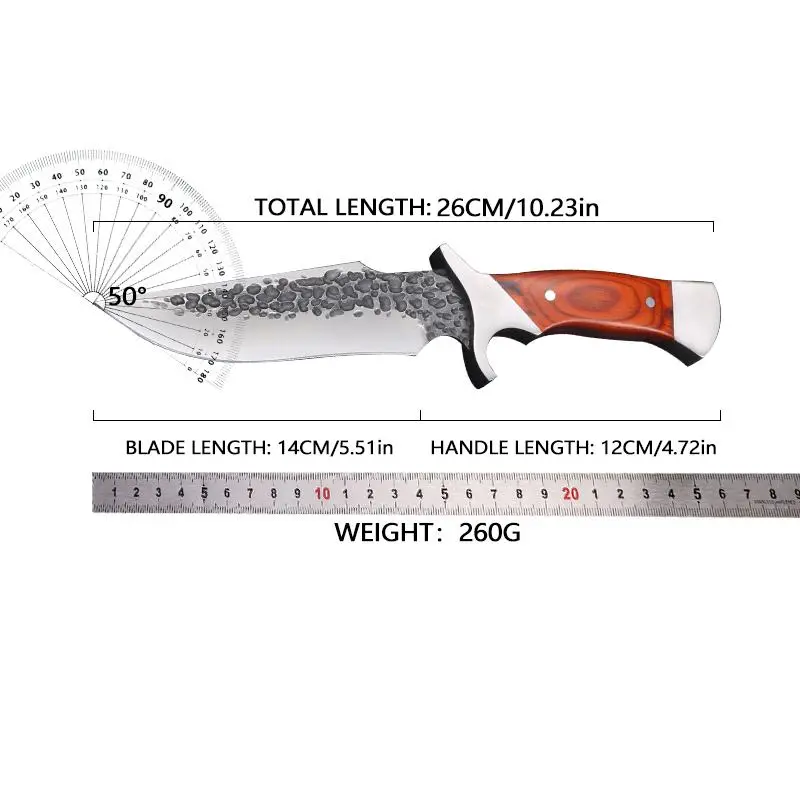 This 10.23-inch outdoor knife is the ultimate combination of durability, versatility, and style. Featuring a forged steel blade, it is designed to excel in a variety of tasks, from outdoor adventures to everyday kitchen use, such as cutting fruits.