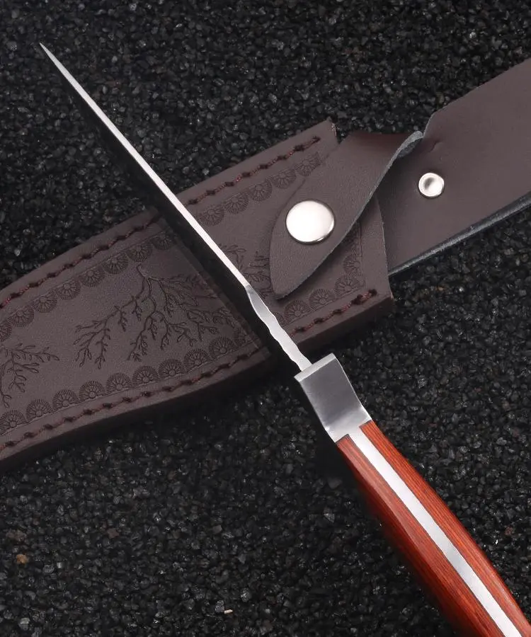 ·Portable Design: Lightweight and easy to carry, the knife can be securely stored in its leather sheath for convenient travel and storage.