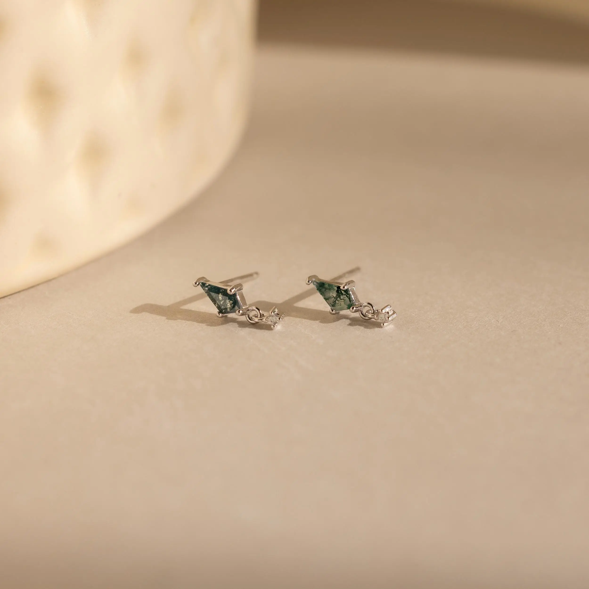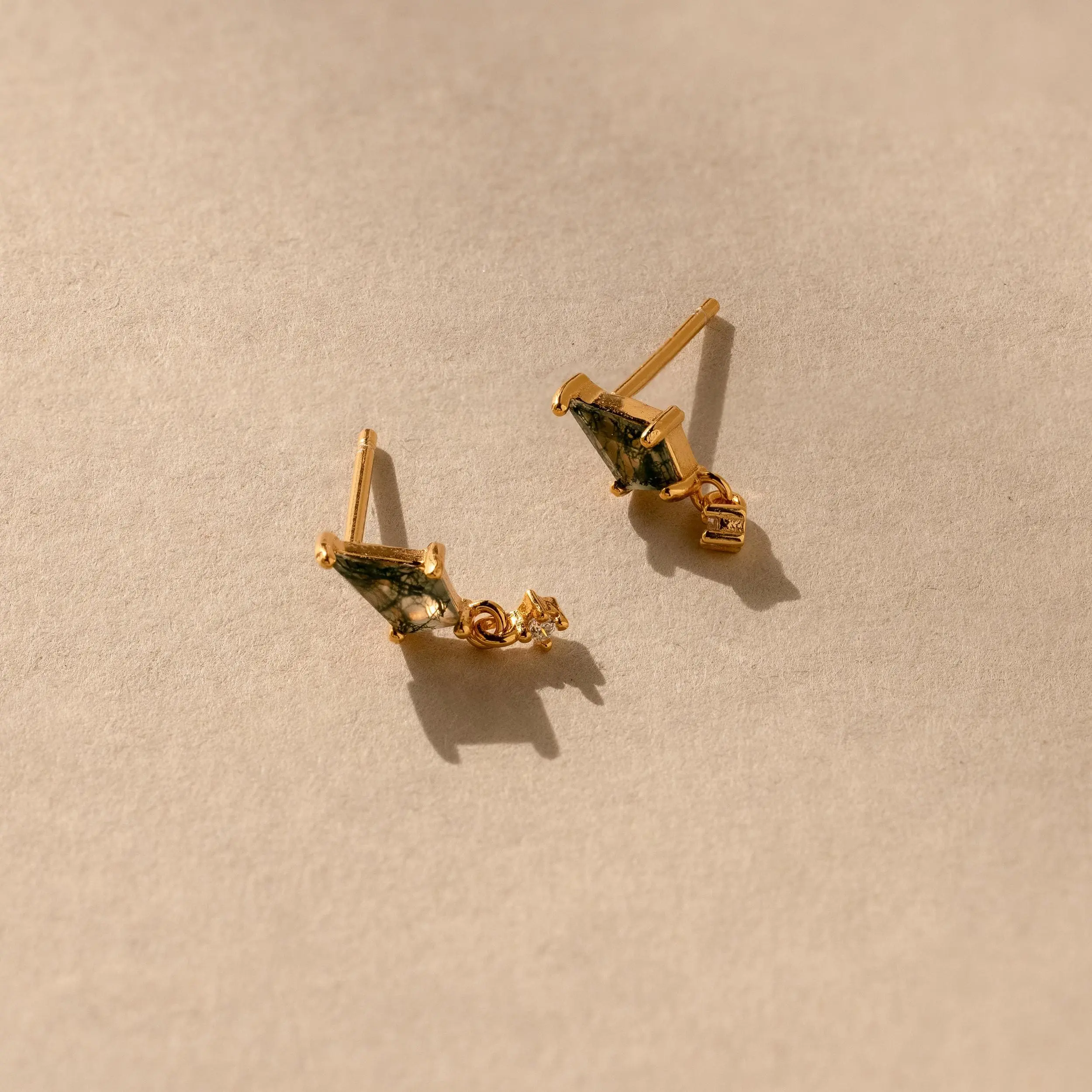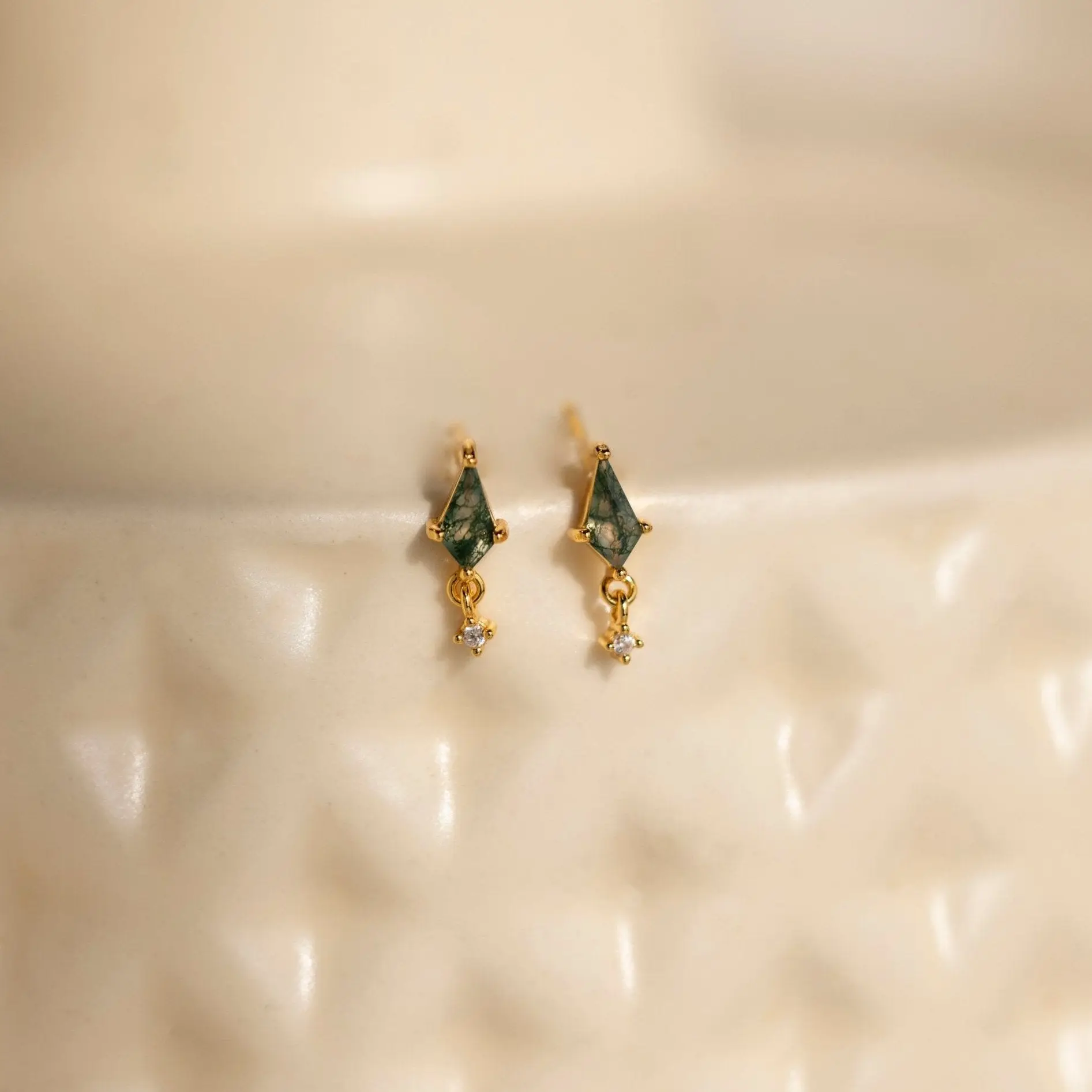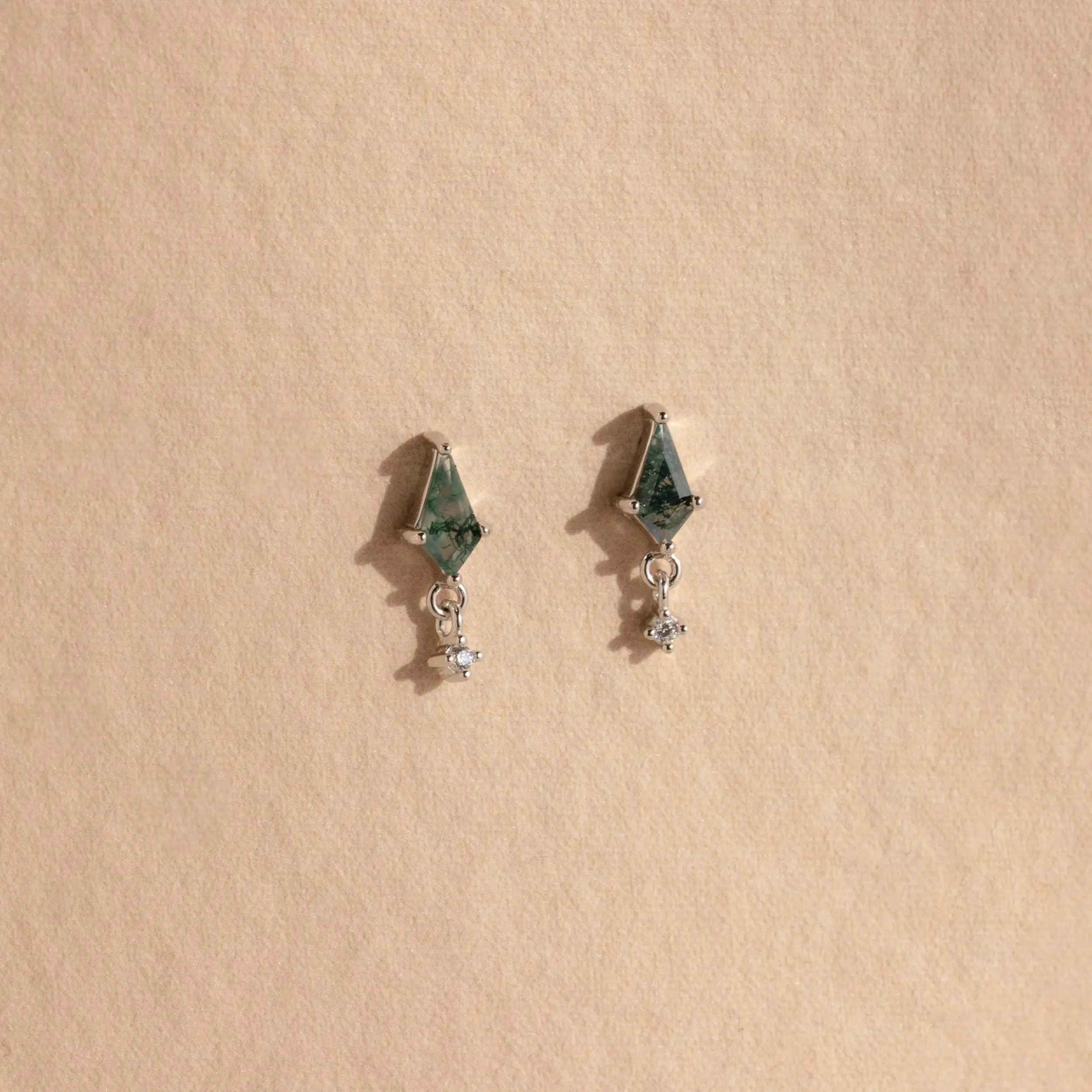 Introducing our Agate Kite Drop Earrings—a captivating blend of natural beauty and refined elegance. Featuring a sleek moss agate paired with a delicate diamond charm, these dainty studs offer a look that’s both grounded and glamorous. Perfect for a day at the botanical gardens or adding a subtle pop of color to your everyday style, they bring effortless sophistication to any outfit ♡
