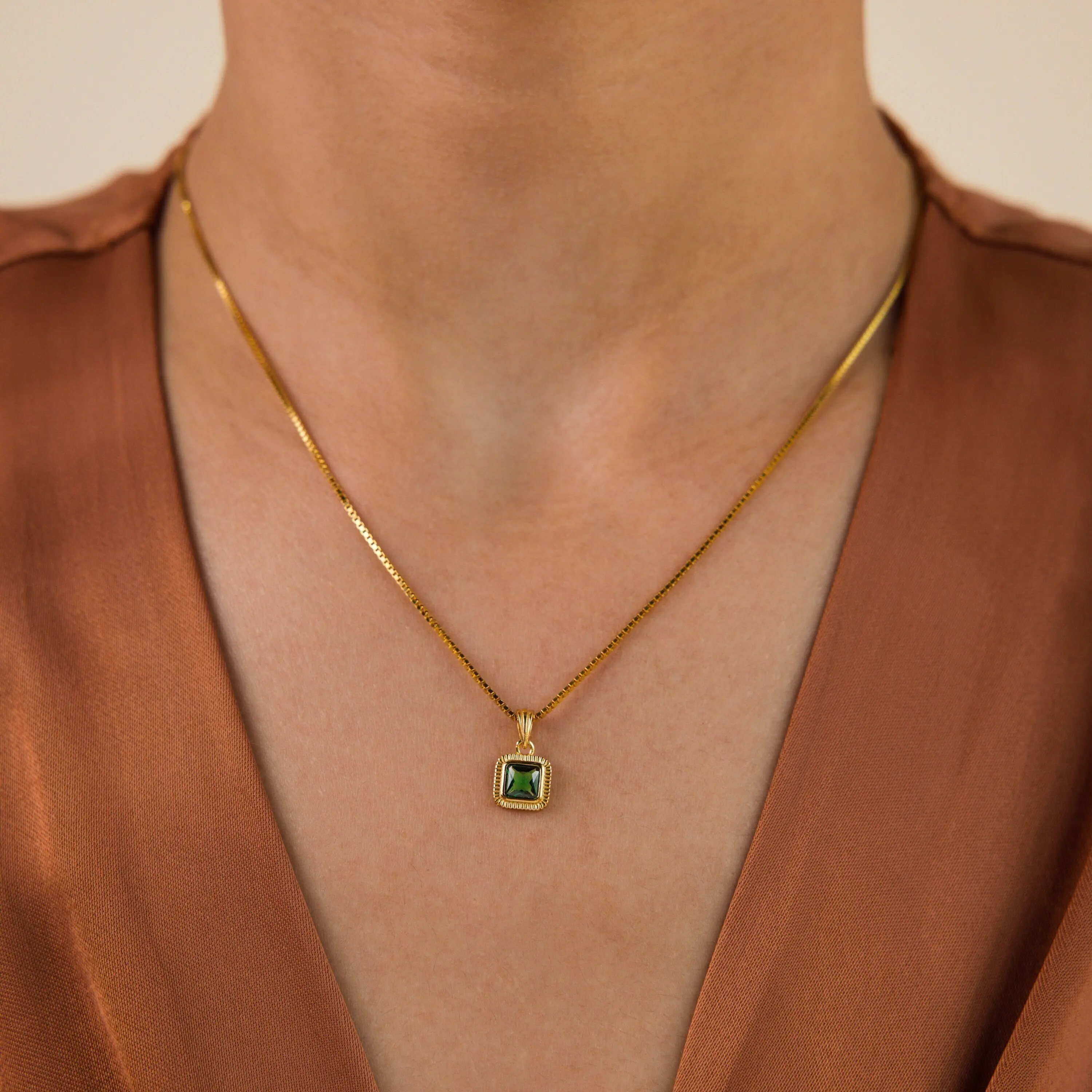 ·Featuring ~8x8mm Ribbed Pendant with ~4x4mm Emerald CZ Gemstone on a Box Chain, adjustable from 16 to 18 inches