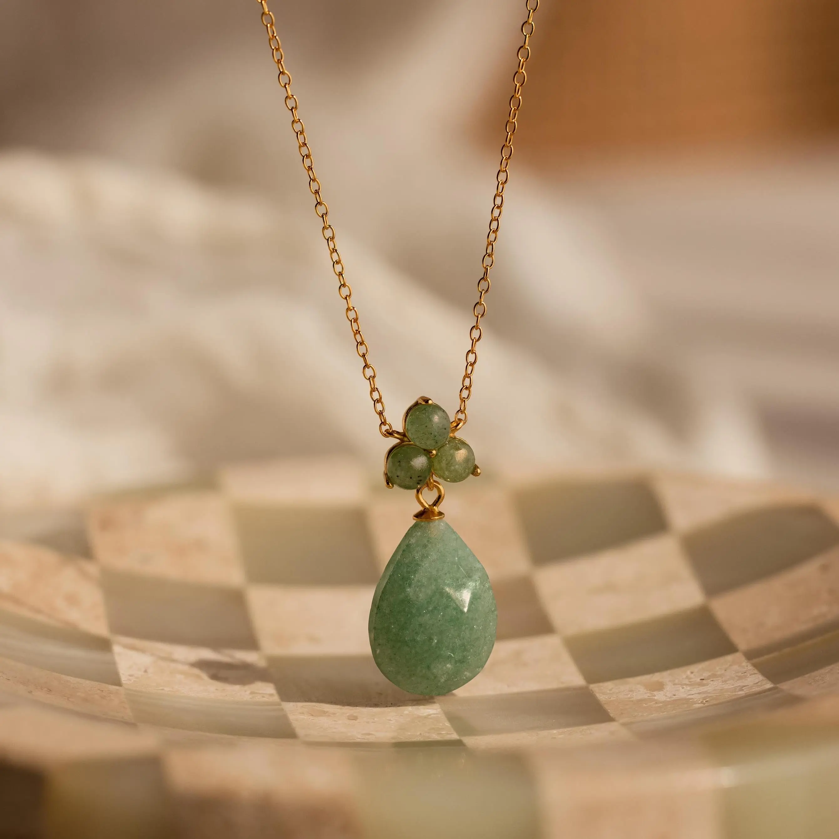 Discover the serene beauty of our Jade Teardrop Necklace, featuring Jade gemstones arranged in a delicate floral pattern and a teardrop pendant dangling gracefully below. Perfect for those who love vibrant, earthy tones or appreciate the symbolic meaning of Jade, this necklace makes a thoughtful gift for a friend or a loved one.