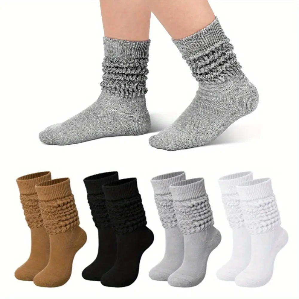 4 Pairs Ultra-Soft, Thick, and Trendy Solid Slouch Socks - Cozy Polyester Knit Fabric, Machine Washable, Perfect for Fall and Winter Menswear Beige