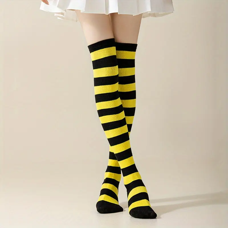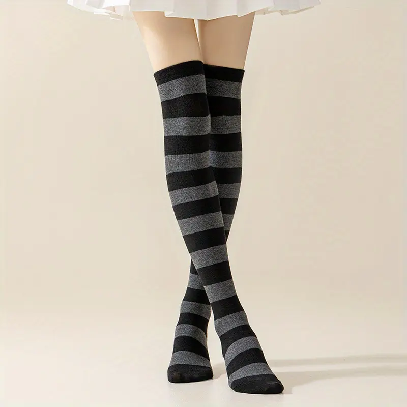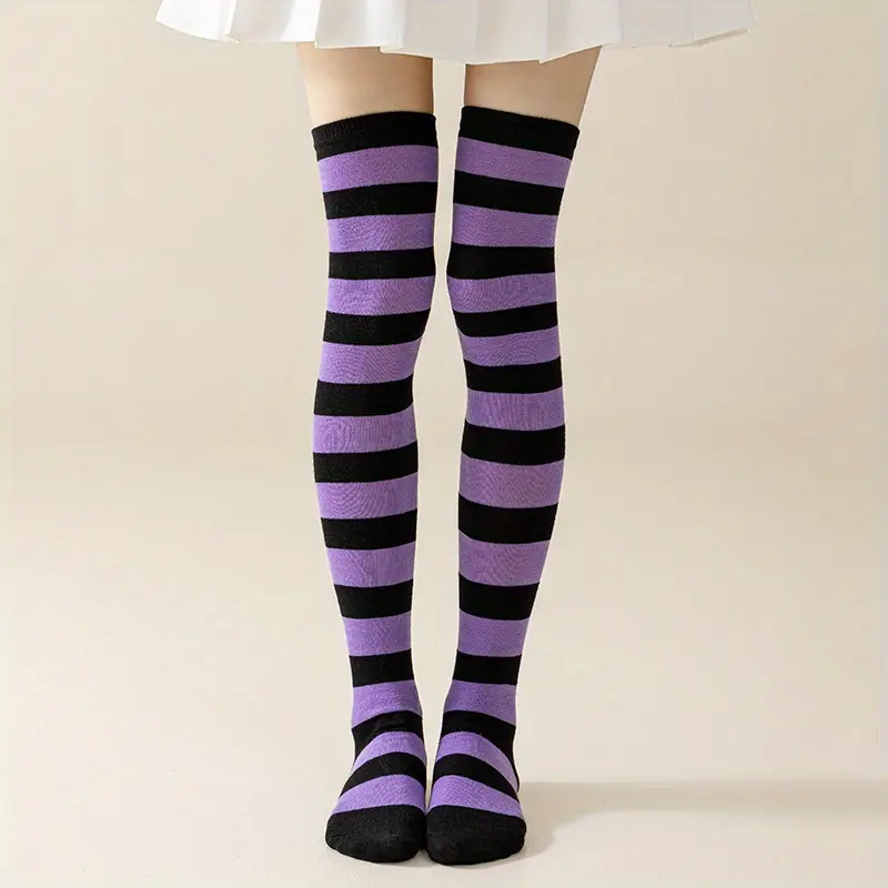6 Pairs High Thigh Socks Striped Over Knee Thin Tights Long Stocking for Women Leg Warmer Womenswear