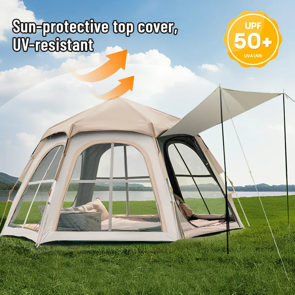The automatic pop-up system makes setup fast and simple. Its soft beige color and practical structure make it a great choice for camping, picnics, beach days, or backyard stays. Portable and foldable, it's the perfect holiday gift. 🎁