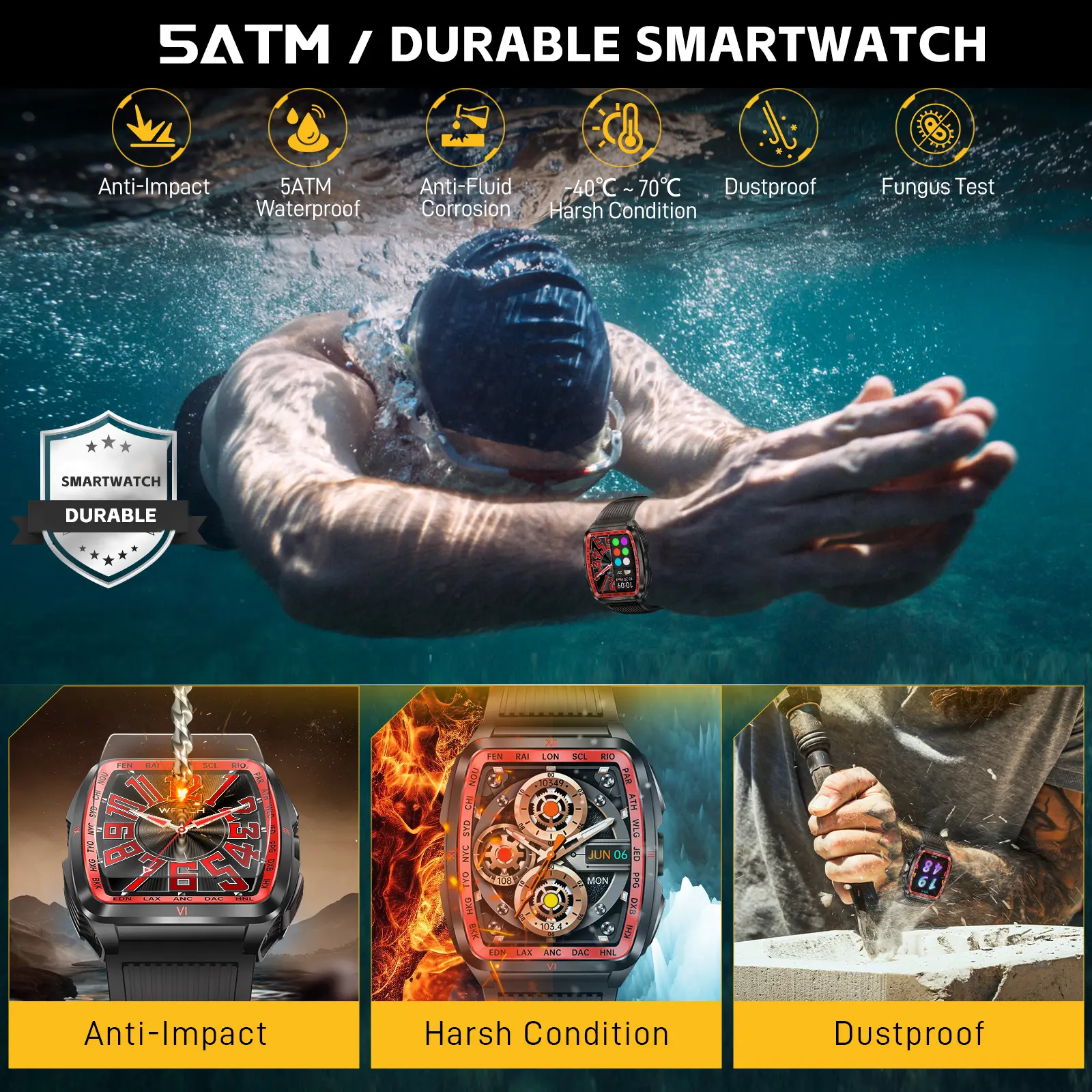 1. 5ATM Waterproof mens smartwatch with LED flashlight, which can be used under water for 30 meters and drive away your fears in the dark night.