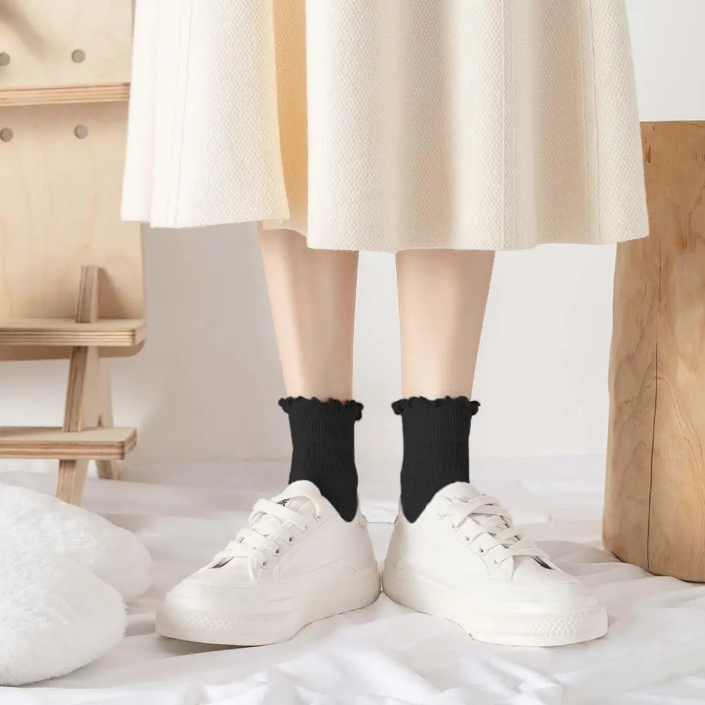 6 Pairs Women's Ruffle Socks Cute Ankle Socks Super Soft Breathable Cool Frilly Socks For Mary Jane Shoes
