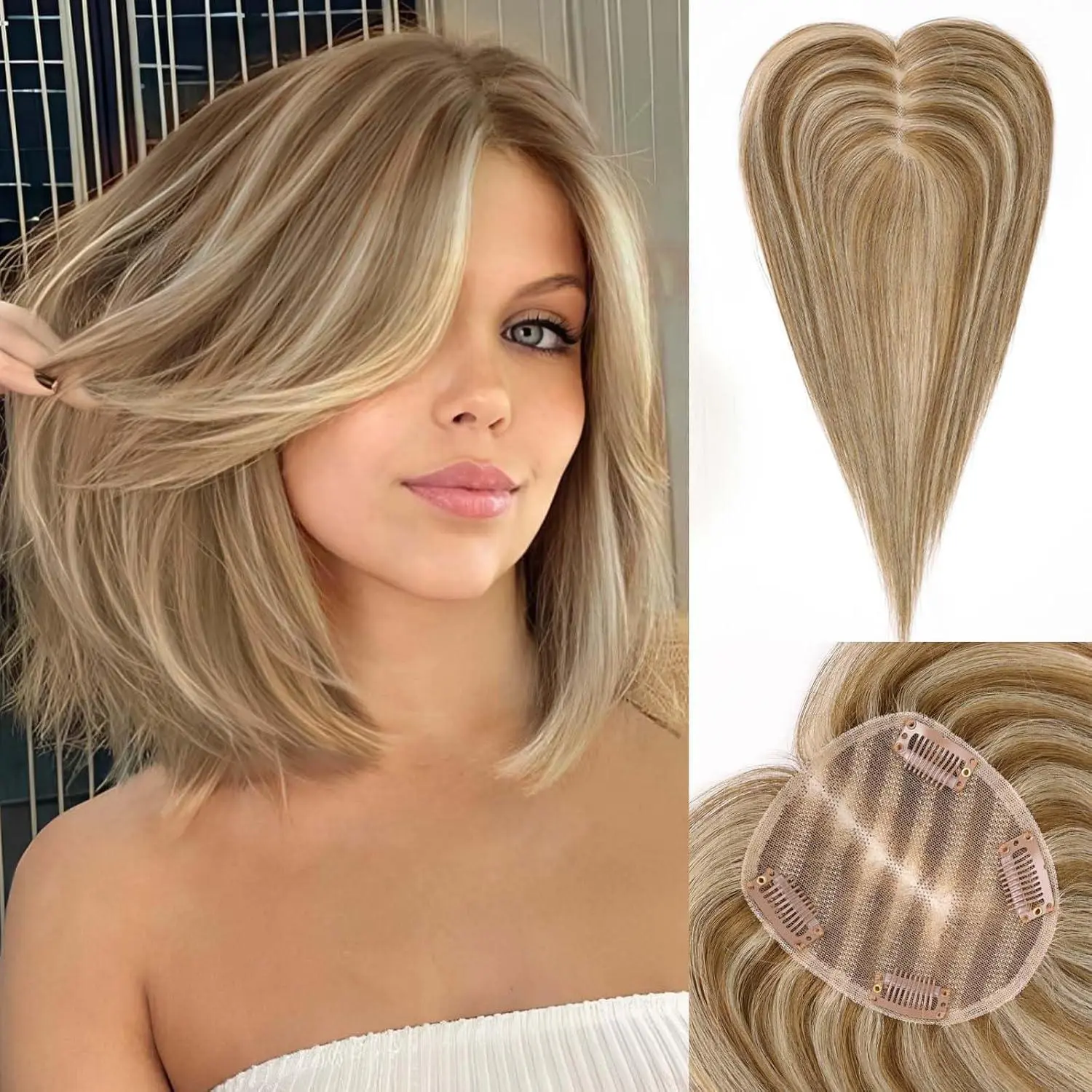 【Real Human Hair Toppers】The 100% Remy Human Hair Topper,very soft and long-lasting.Just like natural hair grown from the scalp.It allows you to part the hair in any direction.