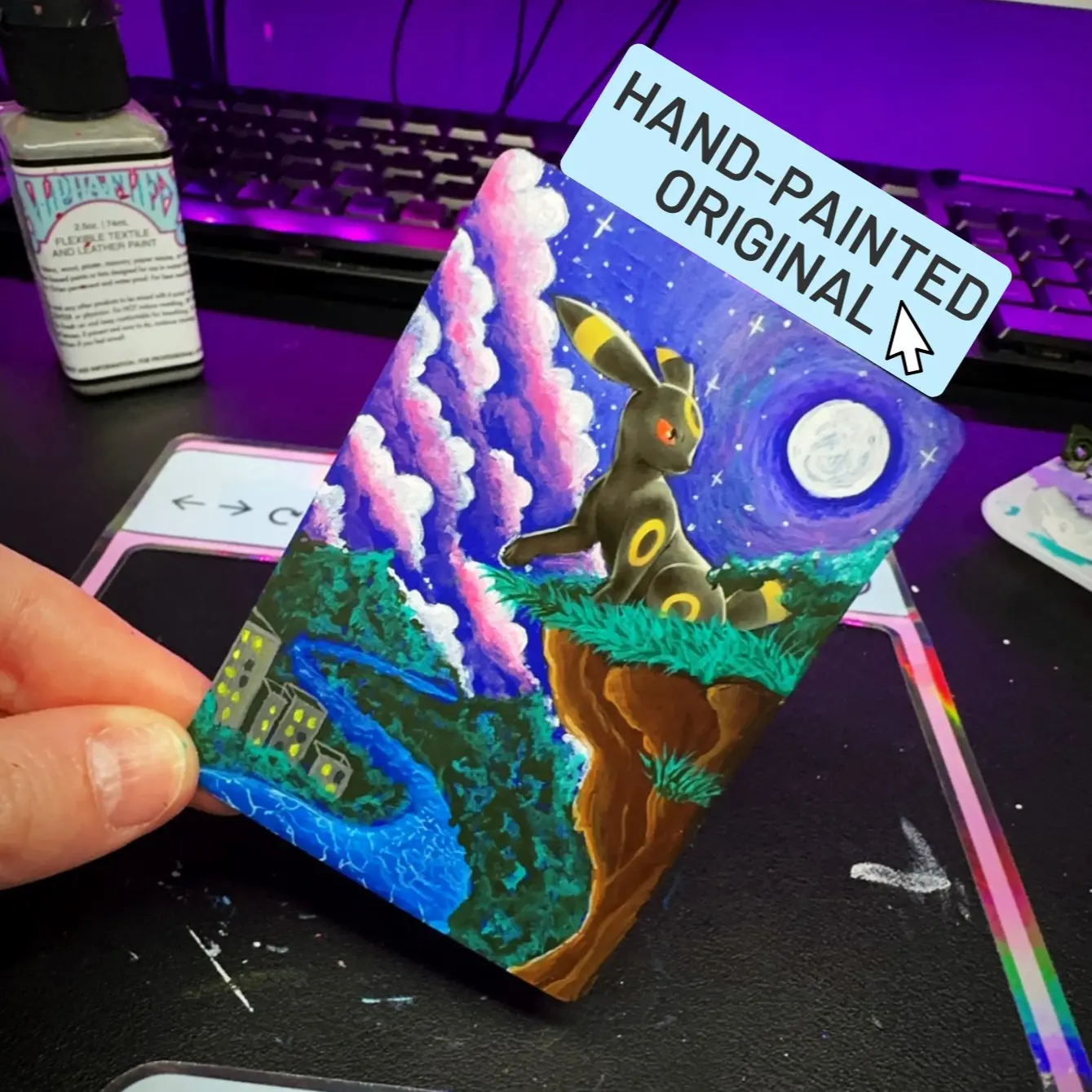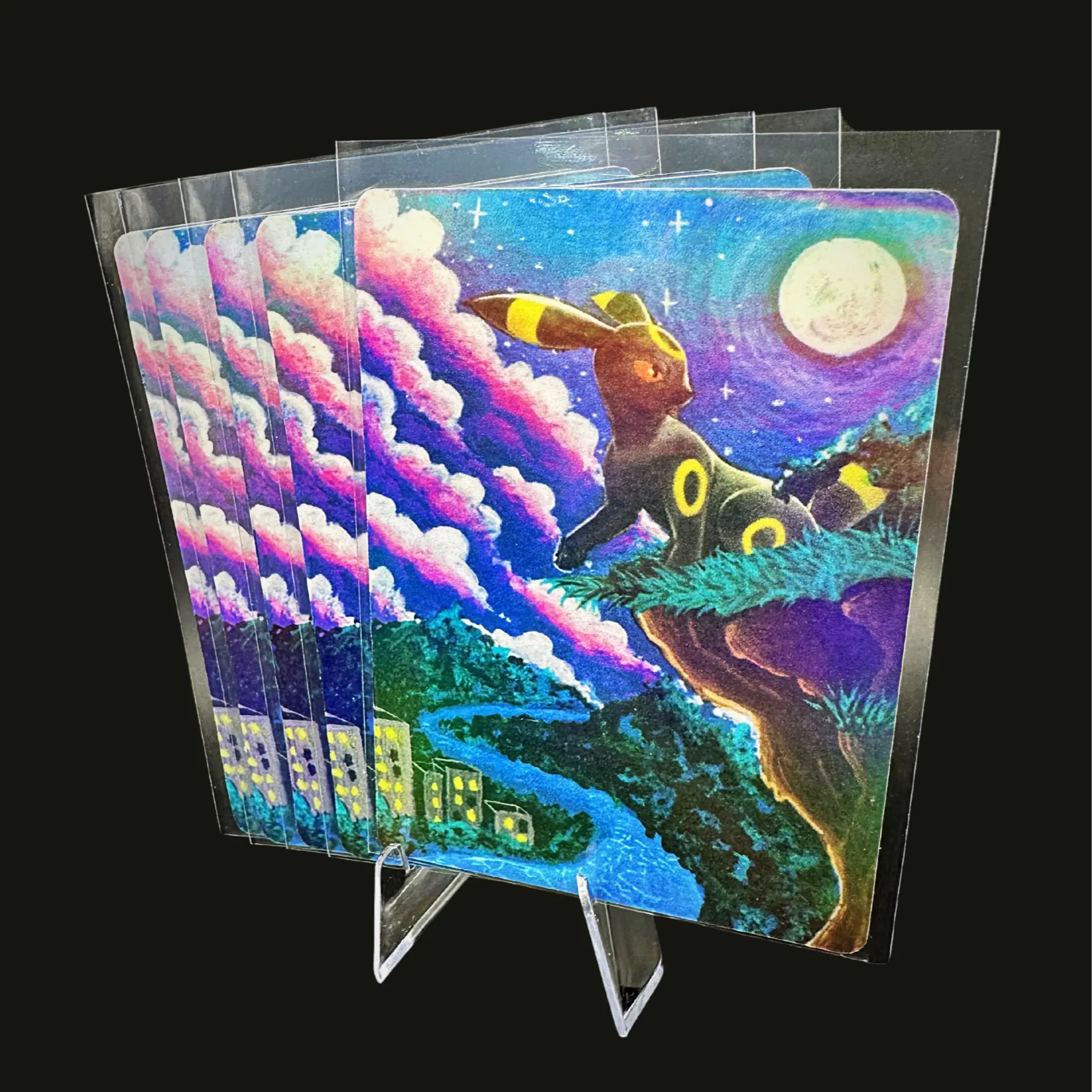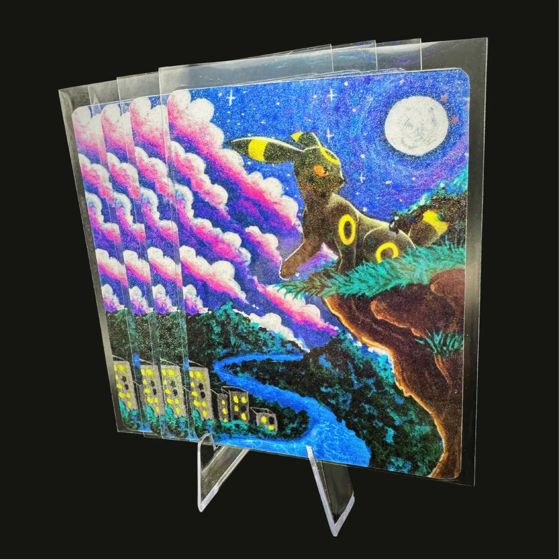 Umbreon Custom Pokémon Card - Custom Art Print with Hand-Painted Design, Includes Sleeve & Top Loader for Display Protection