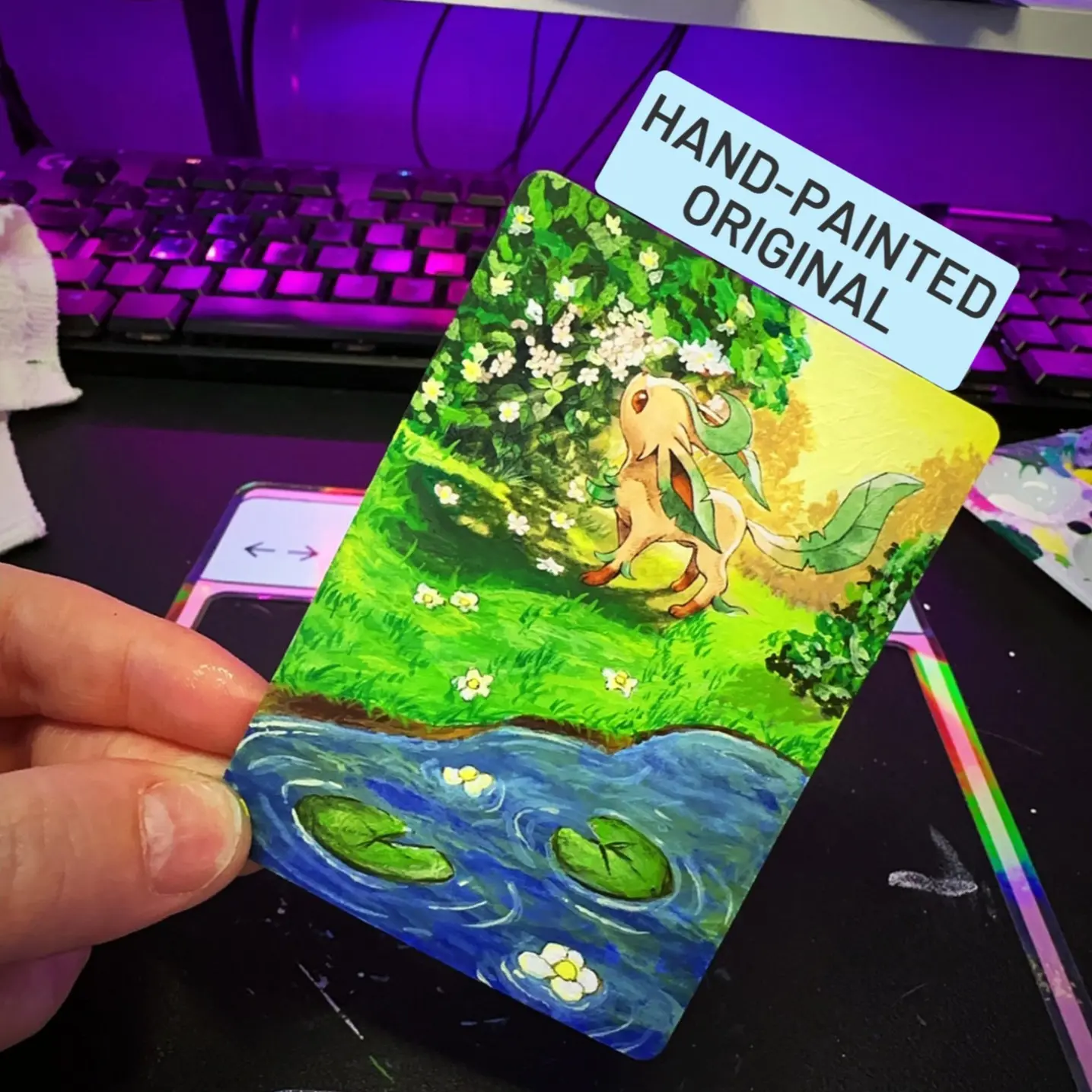 Leafeon Custom Pokémon Card - Custom Art Print with Hand-Painted Design, Includes Sleeve & Top Loader for Display Protection