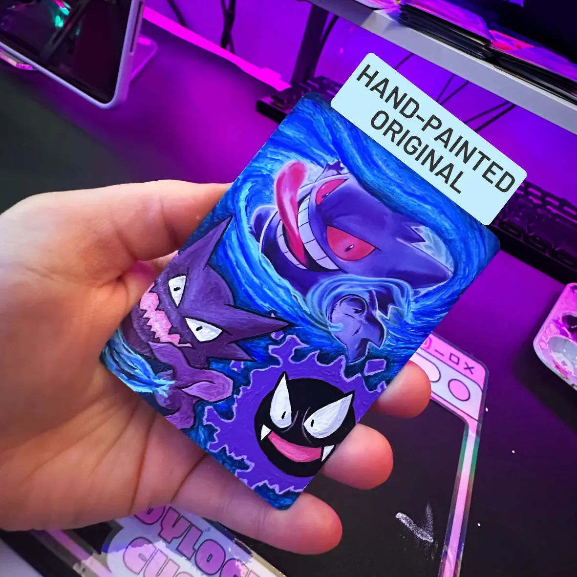 Gengar EVO Custom Pokémon Card - Custom Art Print with Hand-Painted Design, Includes Sleeve & Top Loader for Display Protection