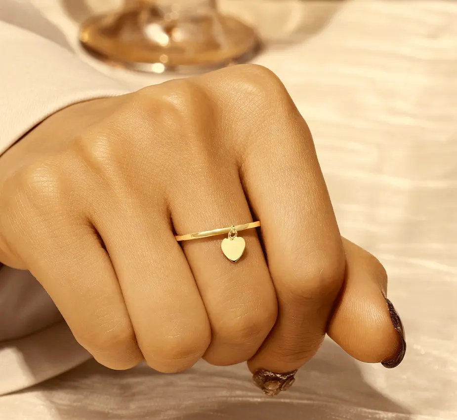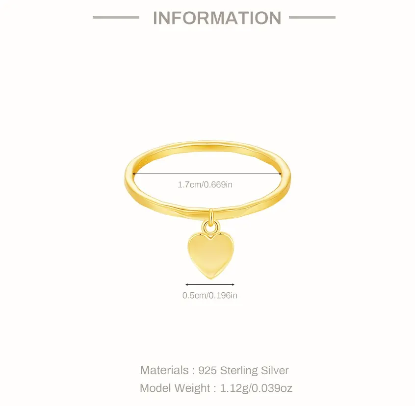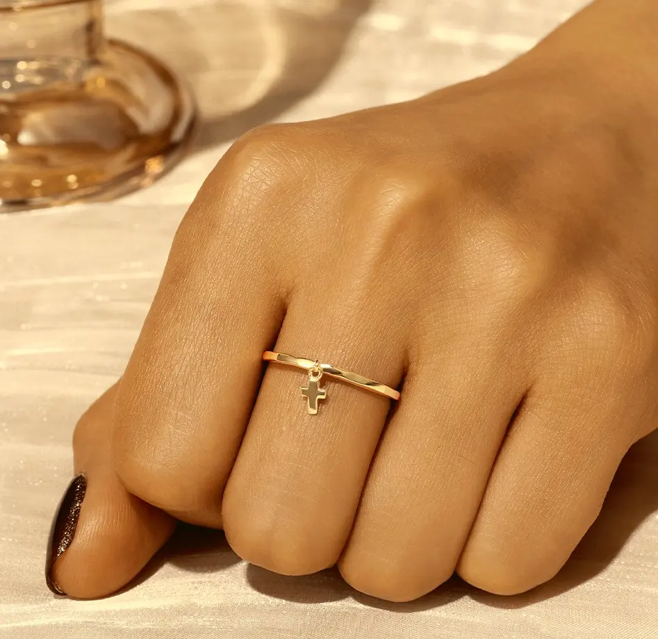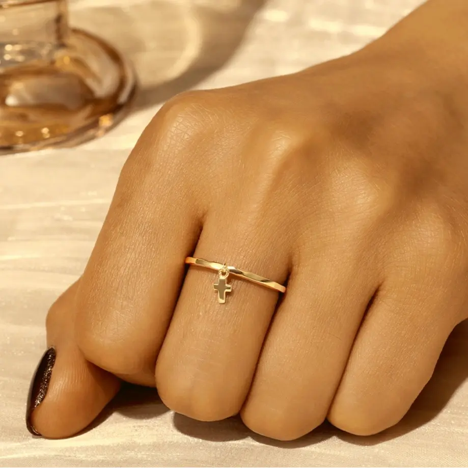 This exquisite ring is crafted from 925 sterling silver and plated with 18K gold. A delicate cross-shaped/heart shaped pendant with simple gold band which ideal for any occasions.