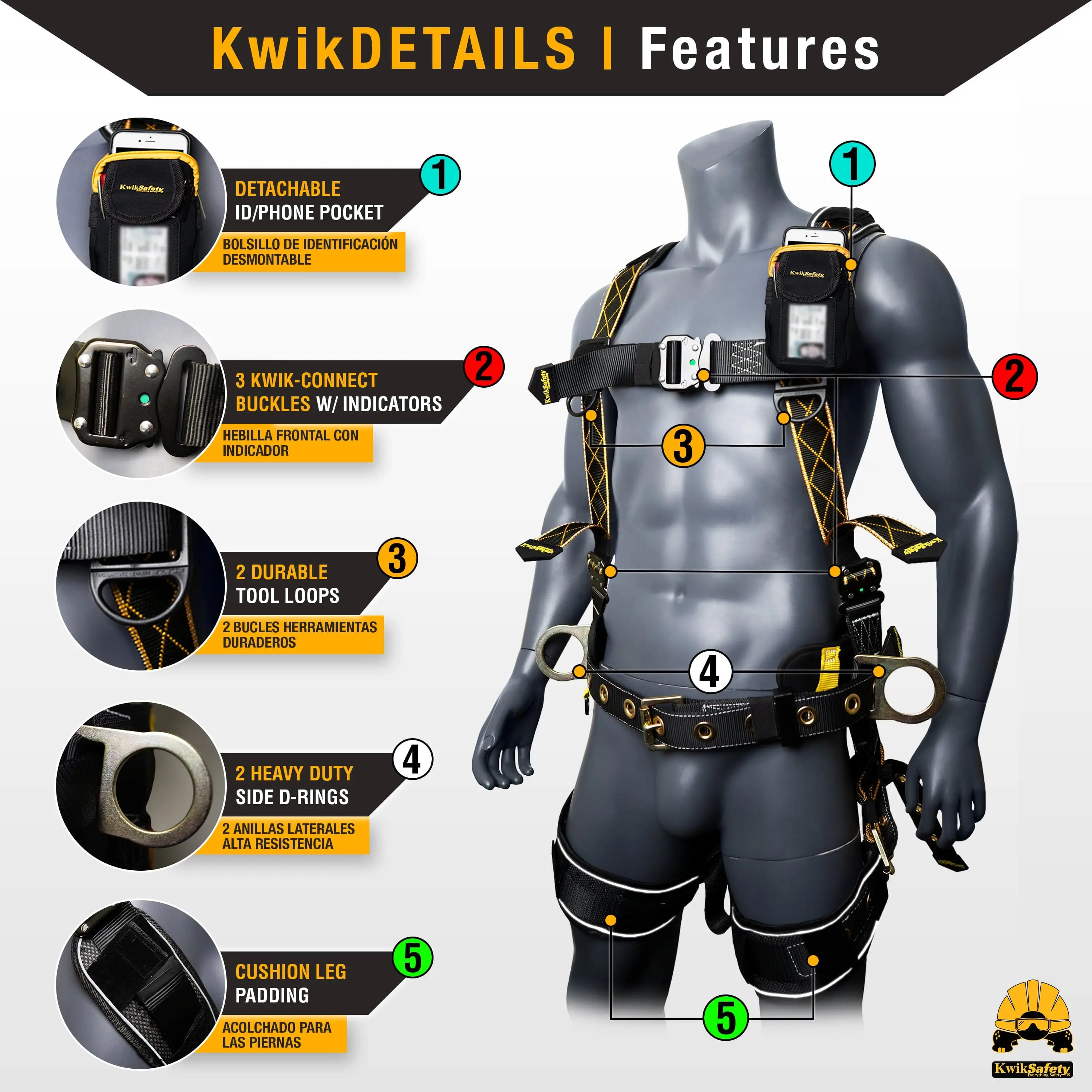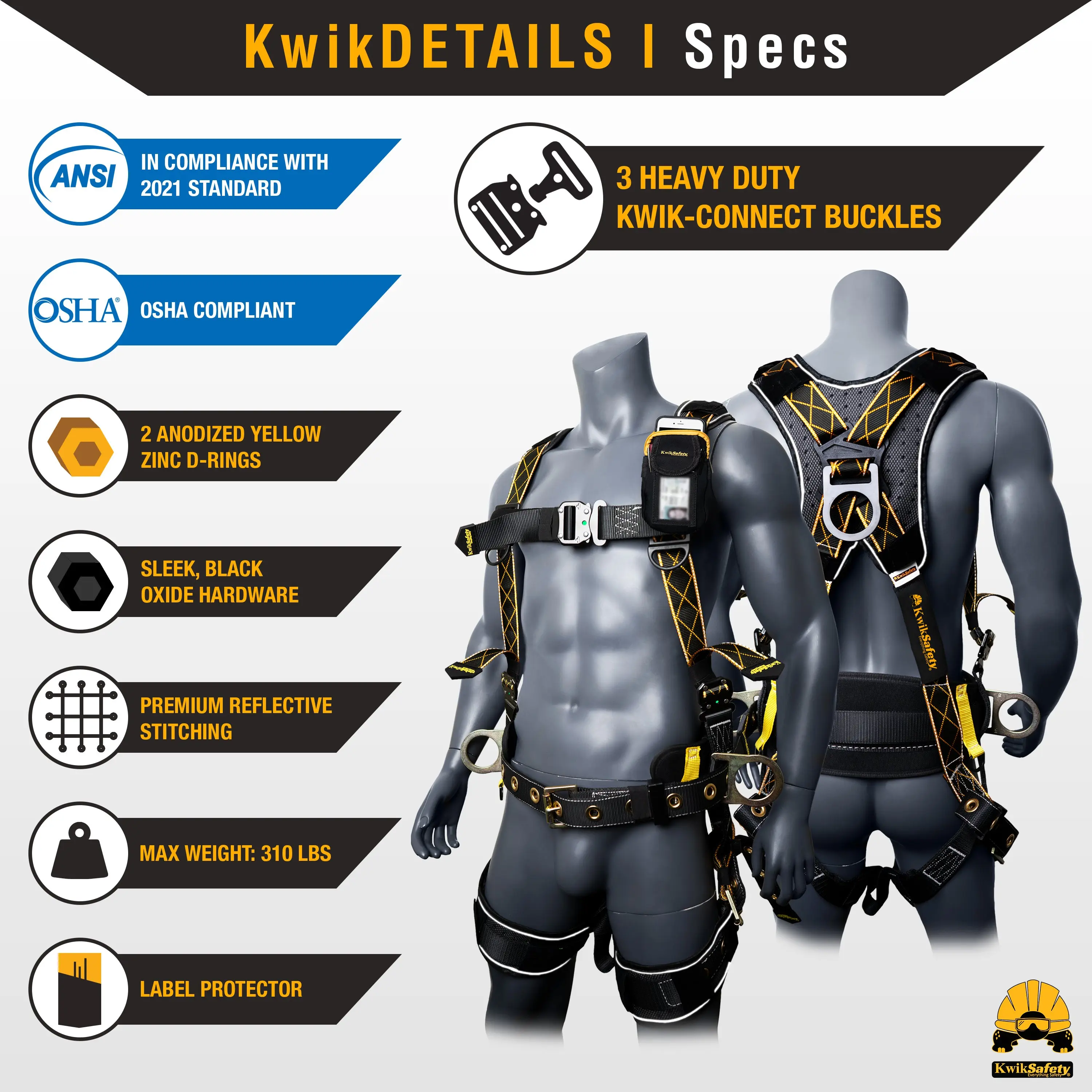 ·Compliance: OSHA compliant, ensuring compliance with industry standards. Designed to meet ANSI/ASSE Z359.11-2021 standards.