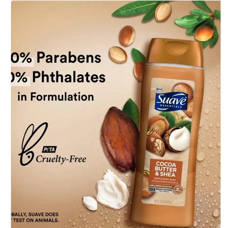 Elevate your skincare routine with Suave Essentials Body Wash and enjoy the benefits of creamy cocoa butter and shea.