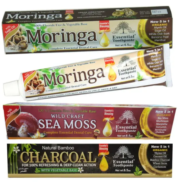 Upgrade your oral care routine with our 3-Pack Organic Toothpaste Set, featuring three unique fluoride-free formulations designed to naturally whiten teeth, fight plaque, and freshen breath—without harsh chemicals. Infused with powerful botanicals and superfoods like activated charcoal, moringa, and sea moss, this set offers a complete, holistic approach to oral health.