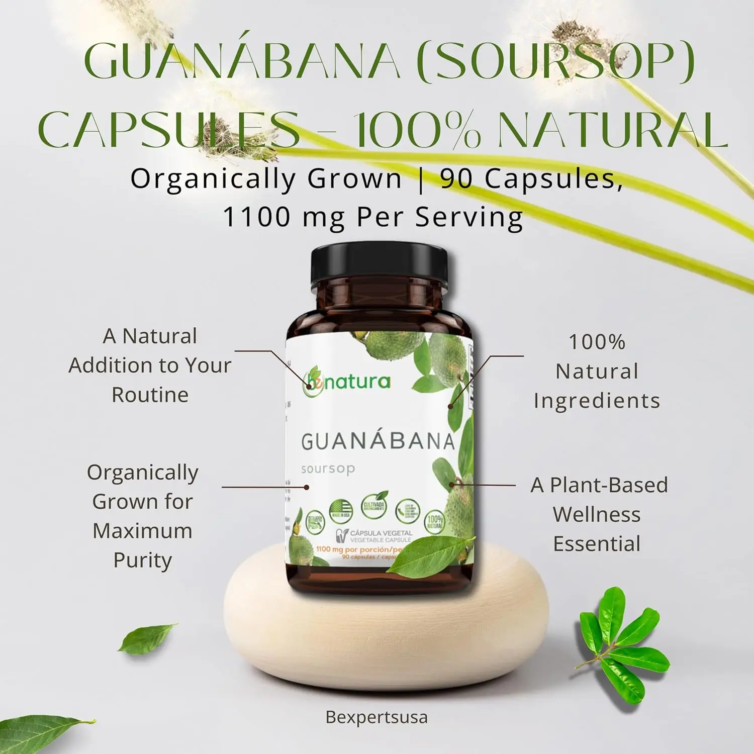 90 Capsules – 1100mg per serving, made with 100% natural soursop.