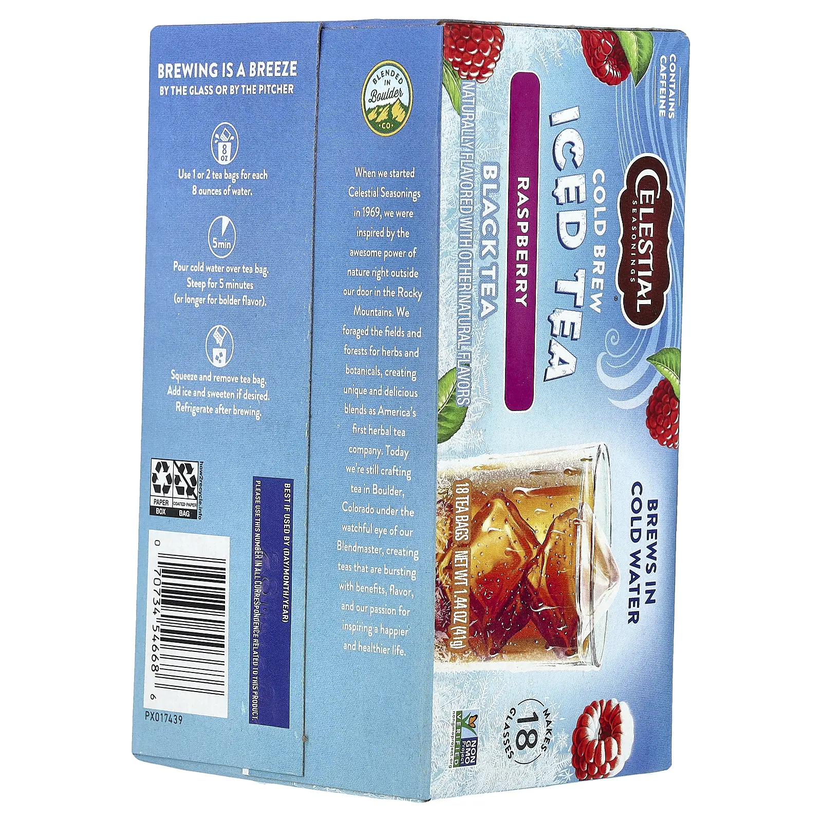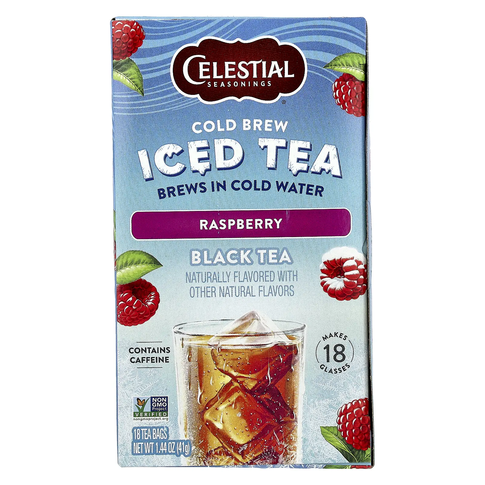 Celestial Seasonings Cold Brew Iced Tea, Black Tea, Raspberry, 18 Tea Bags, 1.44 oz (41 g)