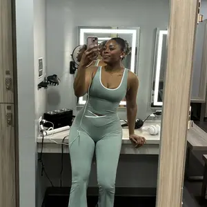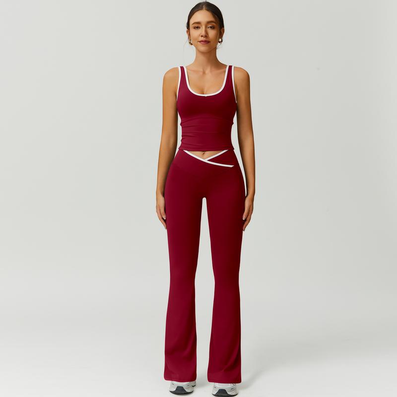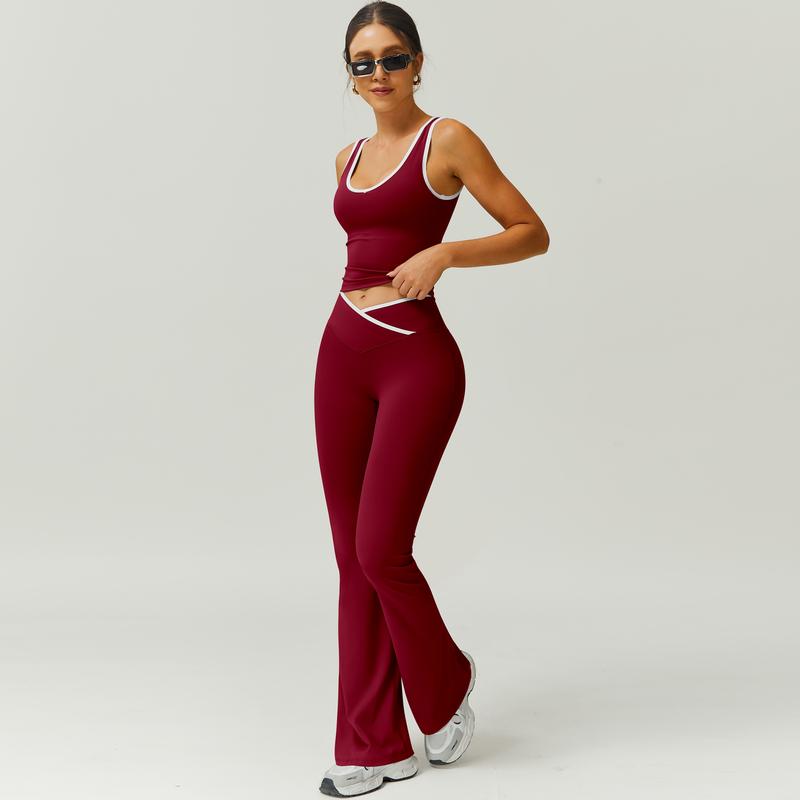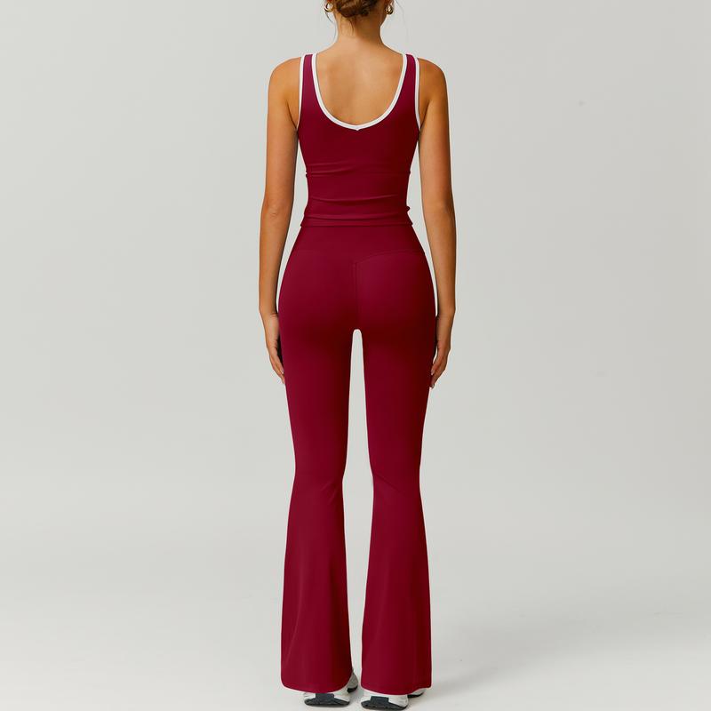 TimeOFF Two-Piece Color Block U-Neck Piped Tank & Bell Bottom Set